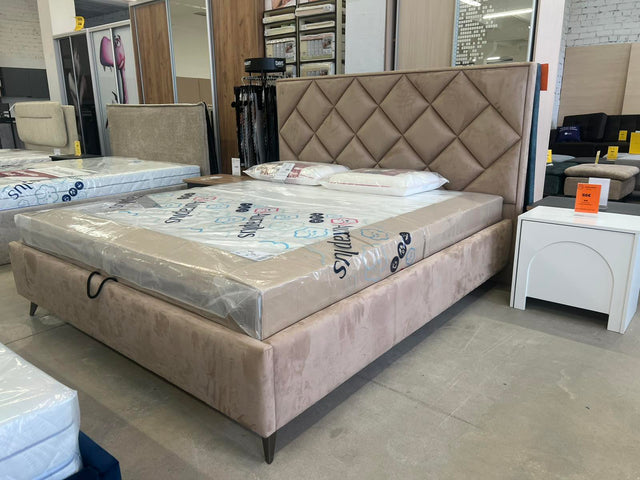 Lietuvos gamintojų sukurta miegamojo lova su rombiukais. Šis modelis yra su pastorintu galvūgaliu, dėl to raštas matomesnis bei daugiau papūstas. Galima šį modelį užsakyti ir be pastorinto galvūgalio.