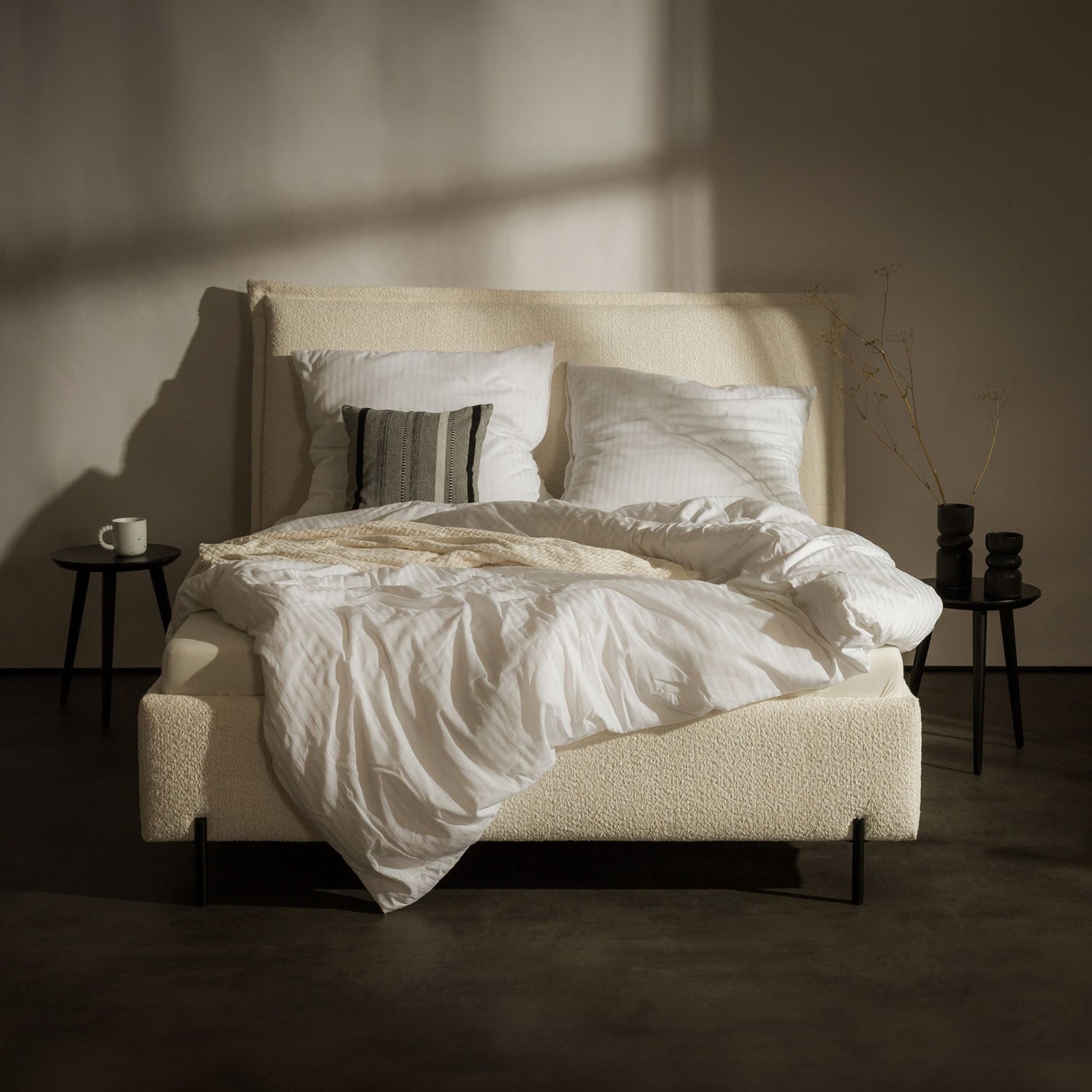 Stilingo dizaino miegamojo lova su patalynės dėže. Yra galimybė rinktis audinį bei lovos dydį pagal pateiktus išmatavimus. Čiužinį galima įsigyti atskirai.