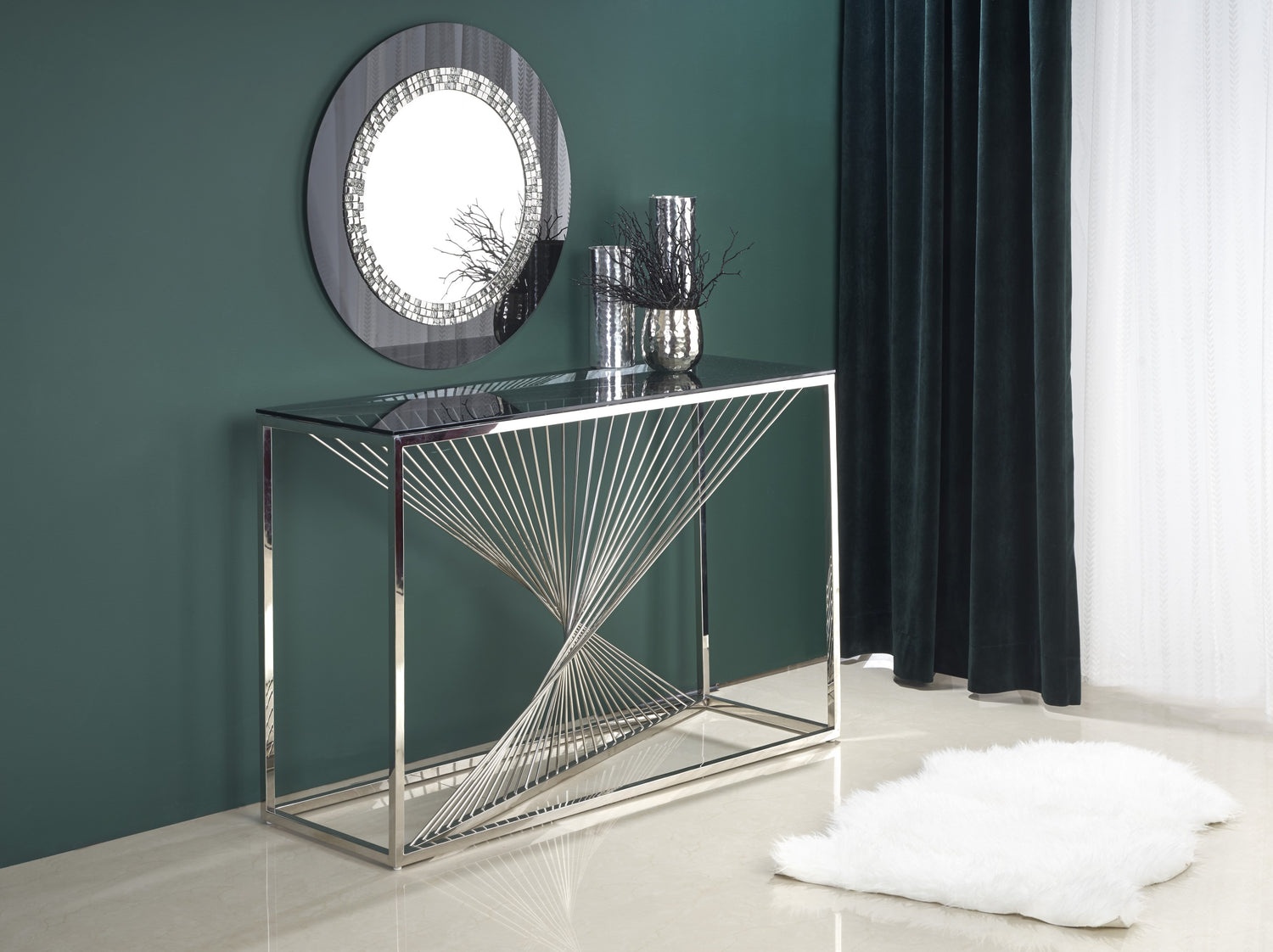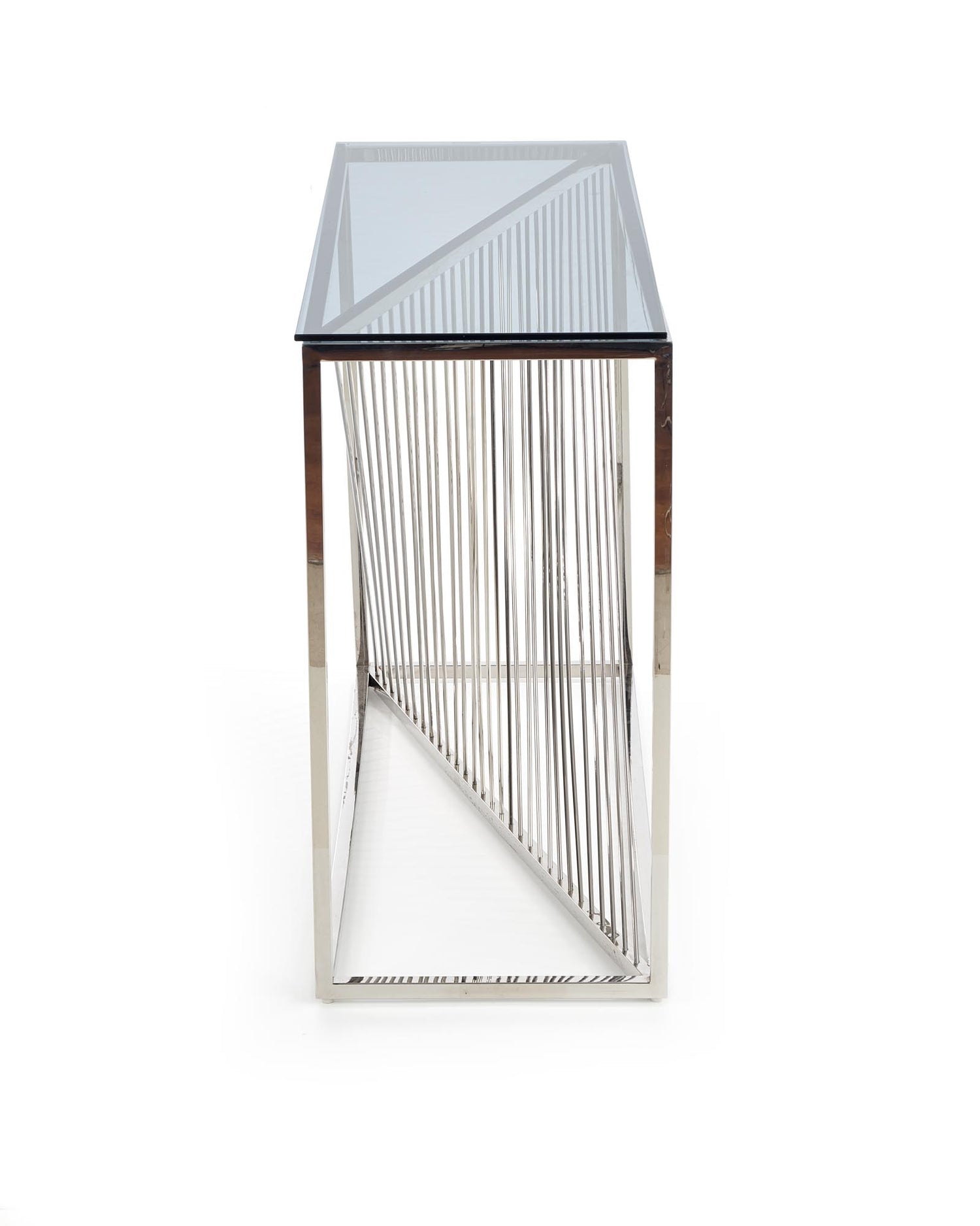 matmenys: 120/40/76 cm, medžiaga: stiklas / chromo plienas, spalva: rūkytas / sidabras