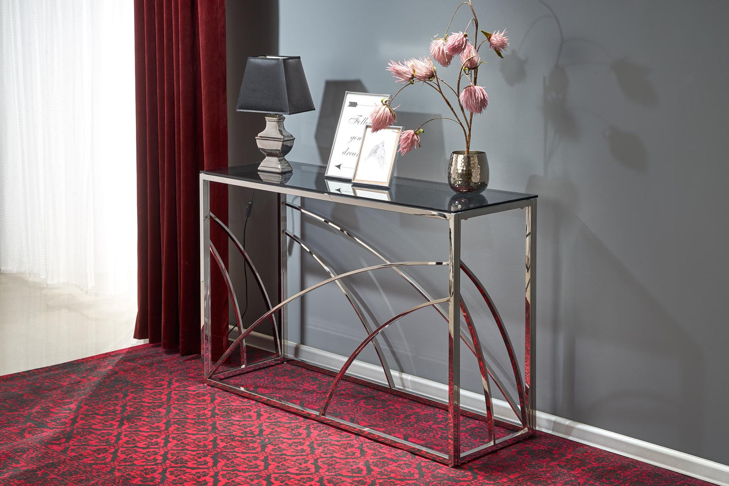 matmenys: 120/40/78 cm, medžiaga: stiklas / chromo plienas, spalva: rūkyta / sidabrinė