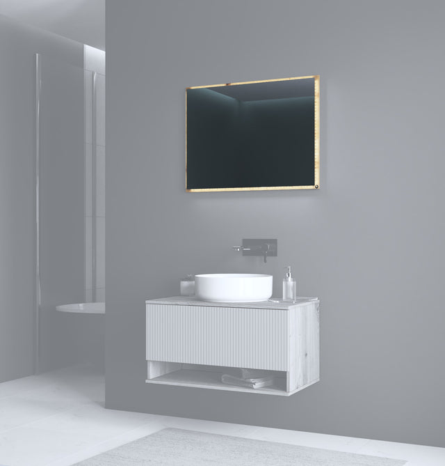 mirror, dimensions: 80/60/3,6 cm, material: laminated chipboard / glass / LED lights, color: artisan oak