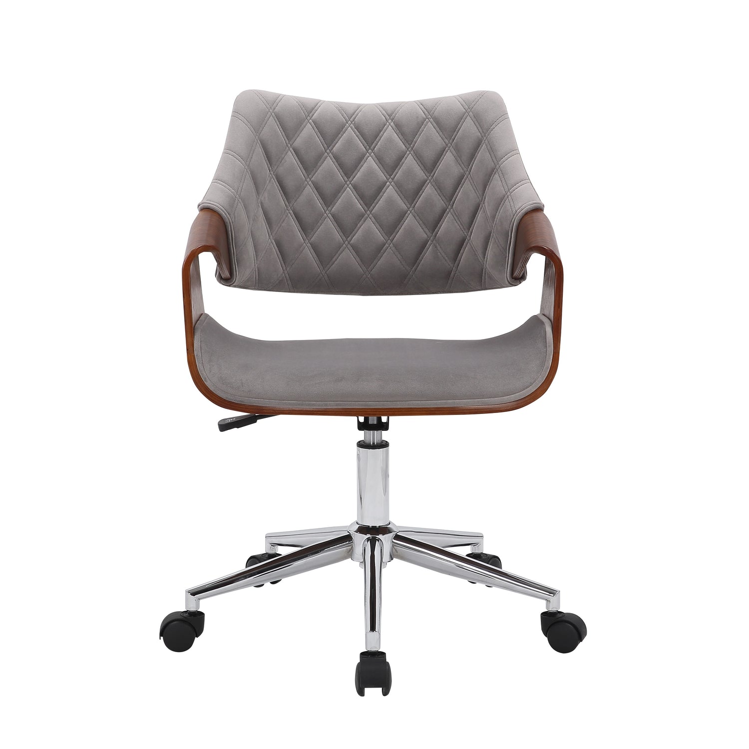 matmenys: 80-90/58/64/45-55 cm, paprastas mechanizmas, medžiaga: lenkta fanera / aksominis audinys, spalva: riešutas / pilka