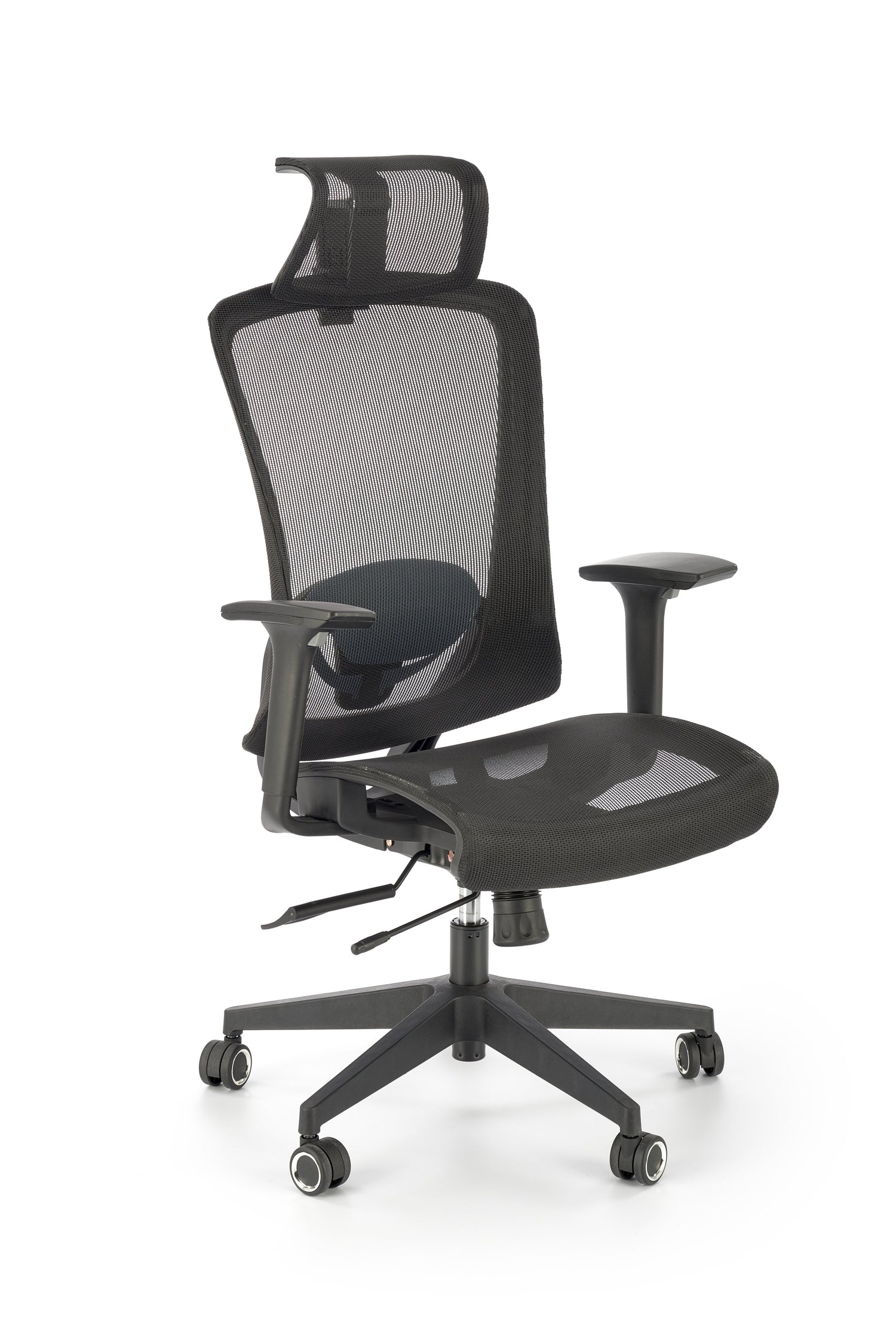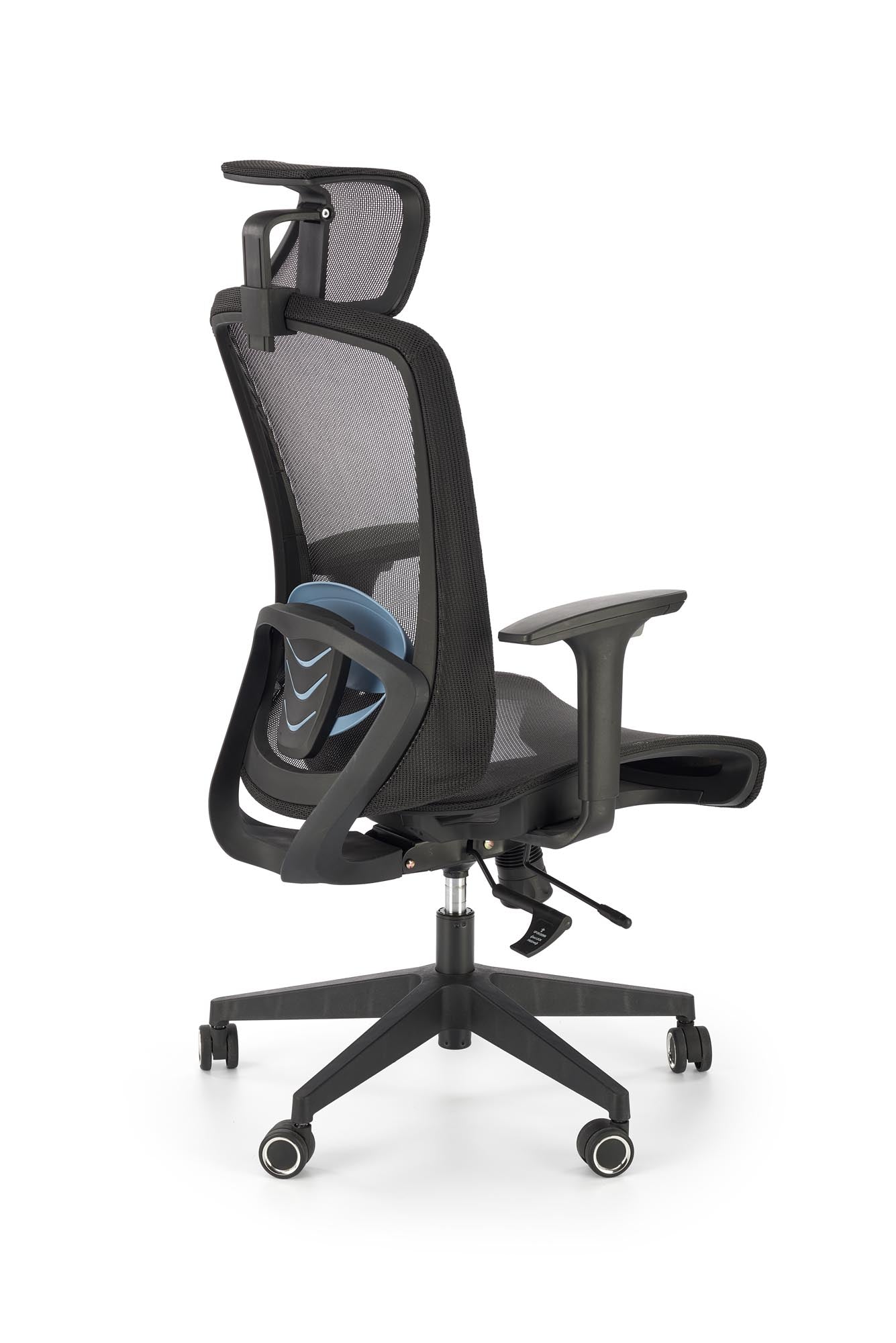 matmenys: 63/63/117-125/42-50 cm, sinchroninis mechanizmas / reguliuojama galvos atrama / reguliuojami porankiai / reguliuojama juosmens atrama / stumdoma sėdynė, membraninis audinys / tinklelis, spalva: juoda
