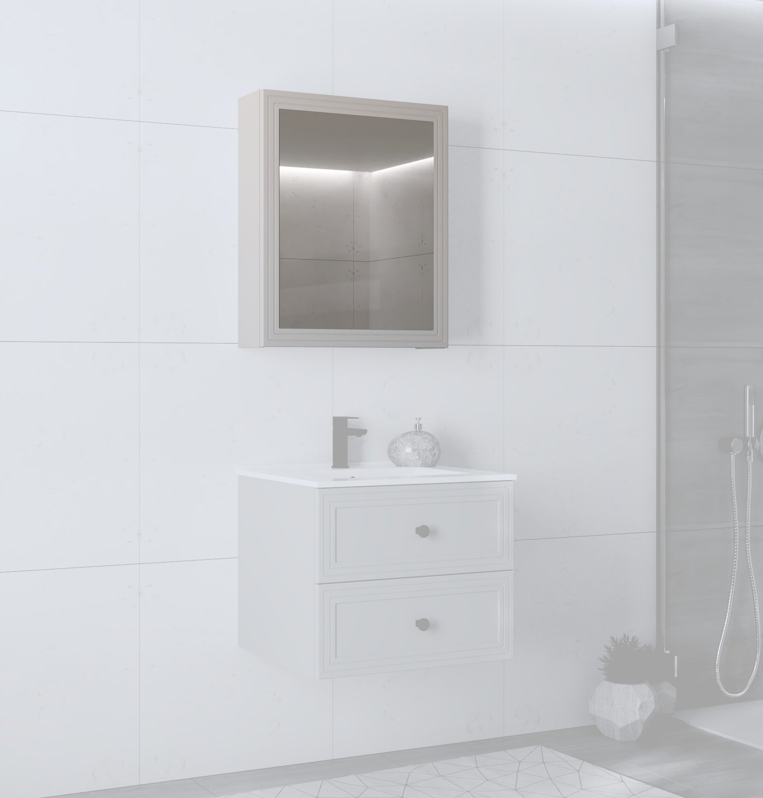 mirror cabinet, dimensions: 60/15/70 cm, material: body - laminated chipboard, front - laminated MDF / glass, soft close hangers and slides, color: cashmere matt