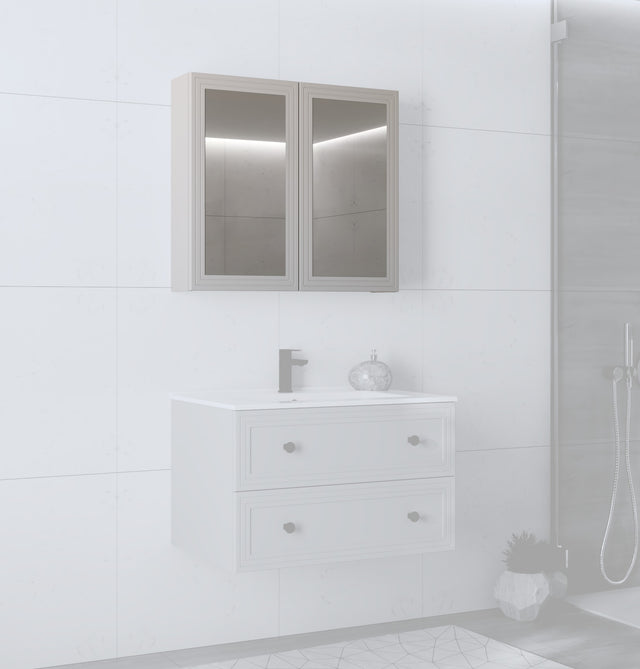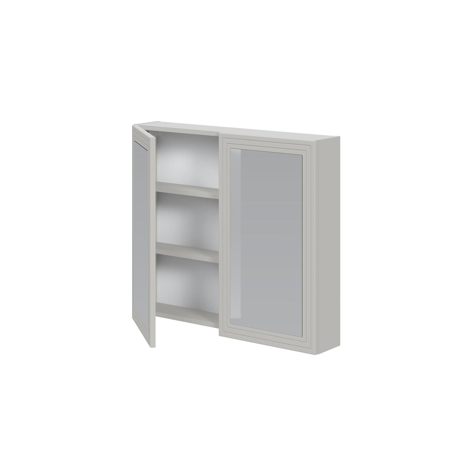mirror cabinet, dimensions: 80/15/70 cm, material: body - laminated chipboard, front - laminated MDF / glass, soft close hangers and slides, color: cashmere matt