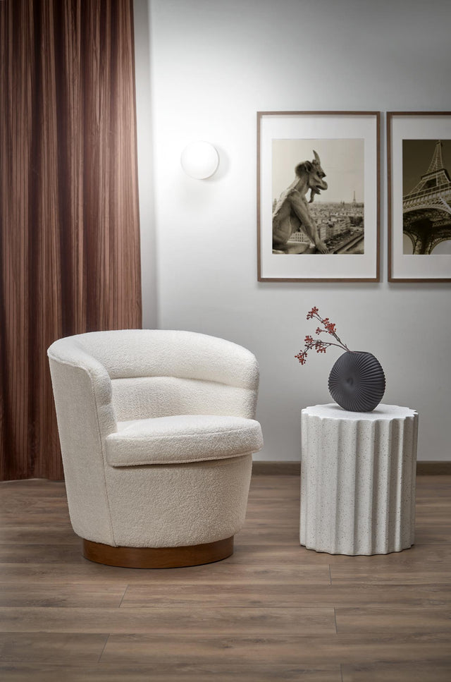 matmenys: 72/73/73/48 cm, medžiaga: audinys - boule / dažytas plienas, spalva: kreminė / riešutas