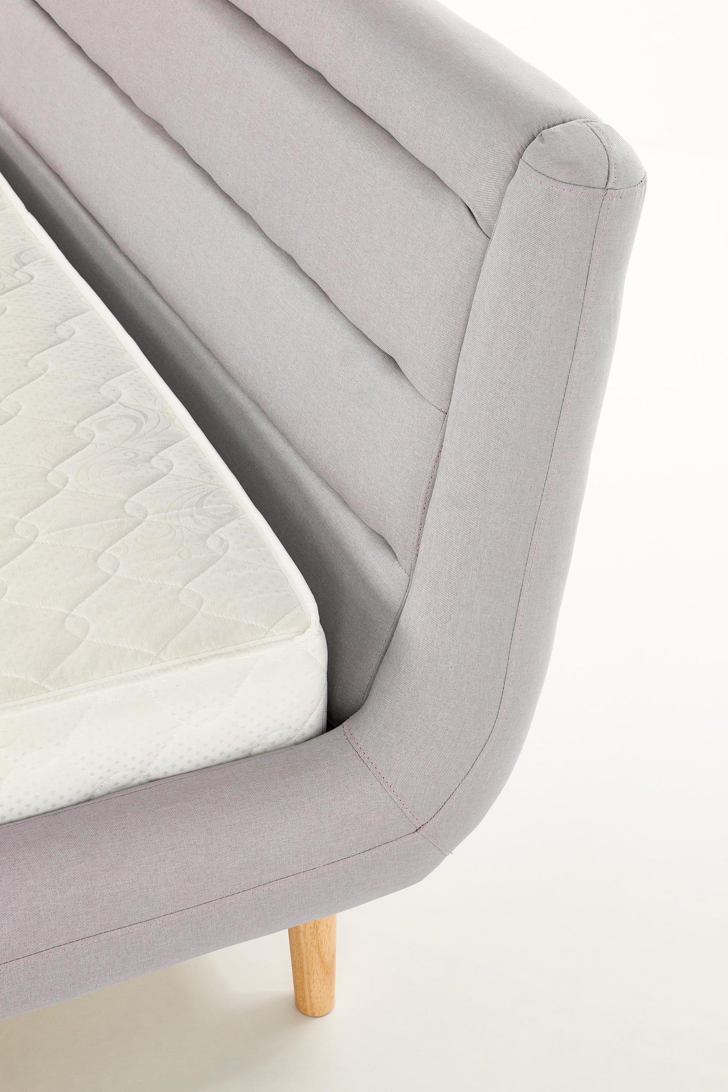 matmenys: 179/232/86 cm, medžiaga: audinys / medžio masyvas, spalva: audinys - šviesiai pilka, mediena - natūrali