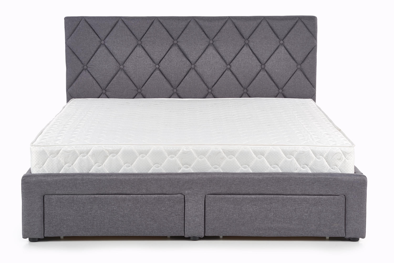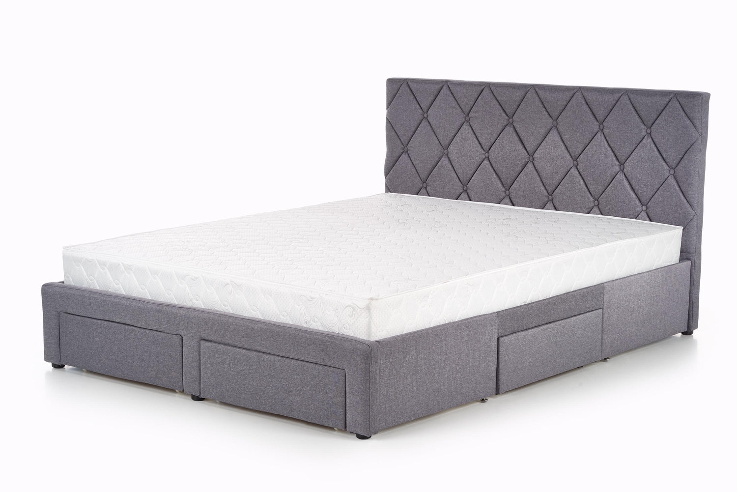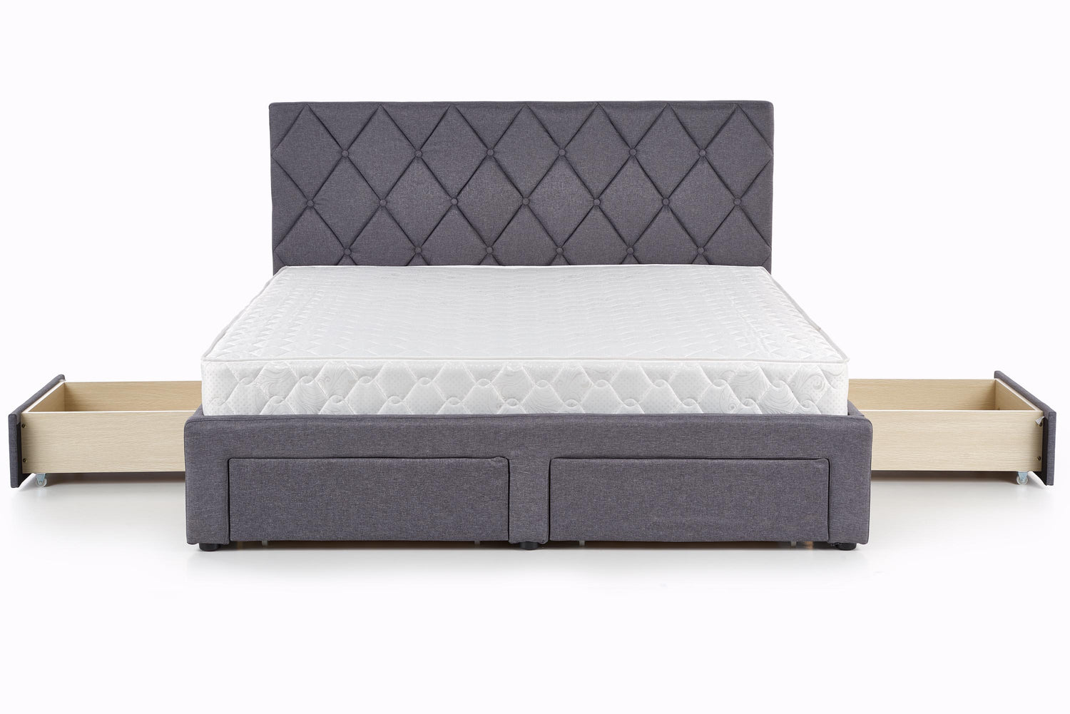 matmenys: 169/218/107 cm, lova su stalčiais, medžiaga: audinys / medžio masyvas, spalva: audinys - pilka, medis - juodas