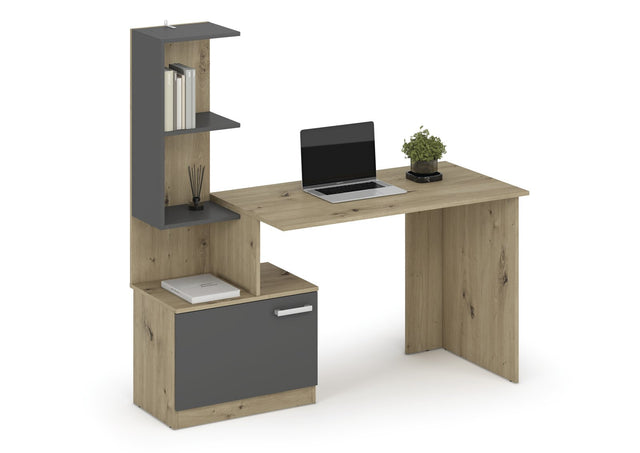 dimensions: 144/60/142 cm, material: laminated chipboard, colors: graphite / artisan oak