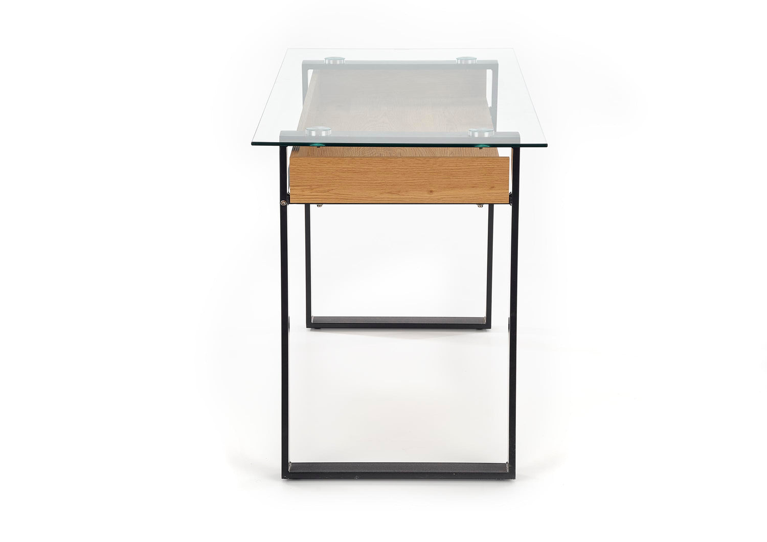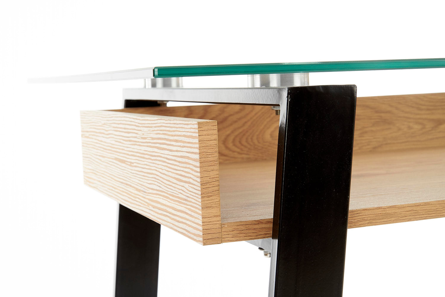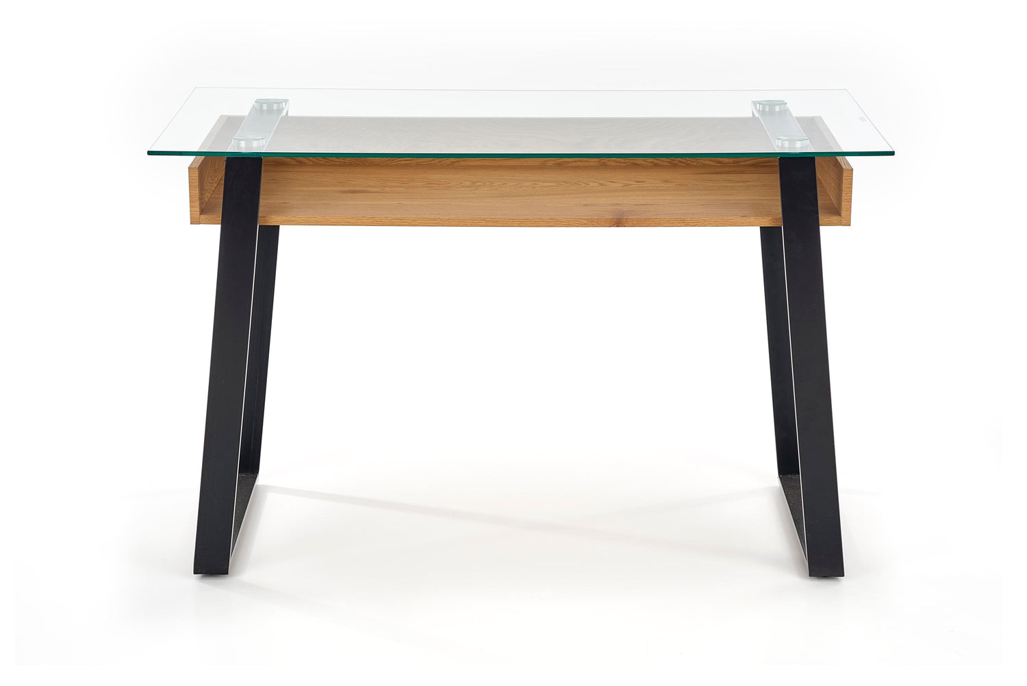 matmenys: 120/60/75 cm, medžiaga: stiklas / laminuotas MDF / milteliniu būdu dažytas plienas, spalva: auksinis ąžuolas / juodas