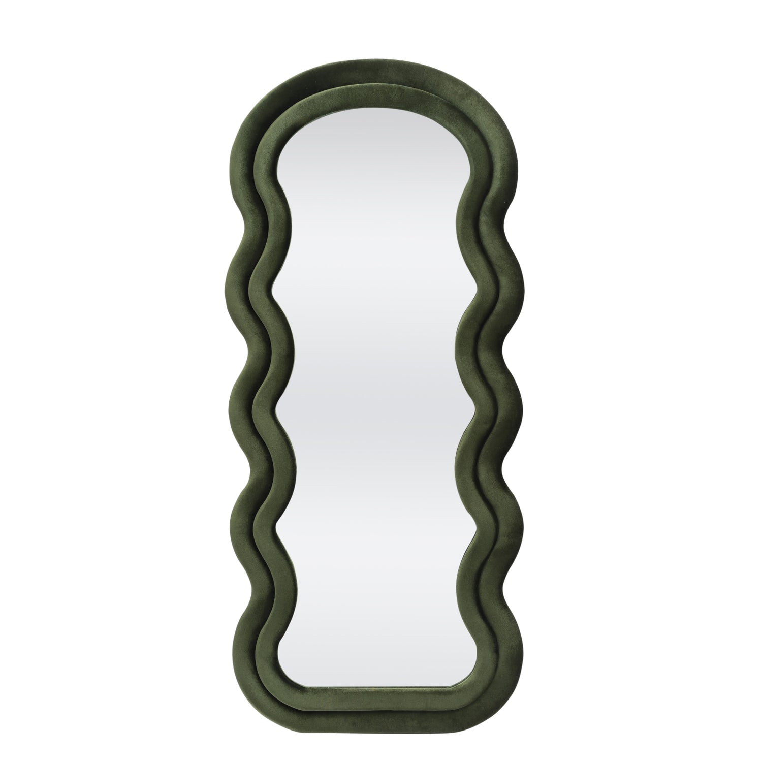 standing mirror or wall mirror, dimensions: 160/70/3 cm, material: frame - cloth - velvet / base - MDF board / mirror, color: olive