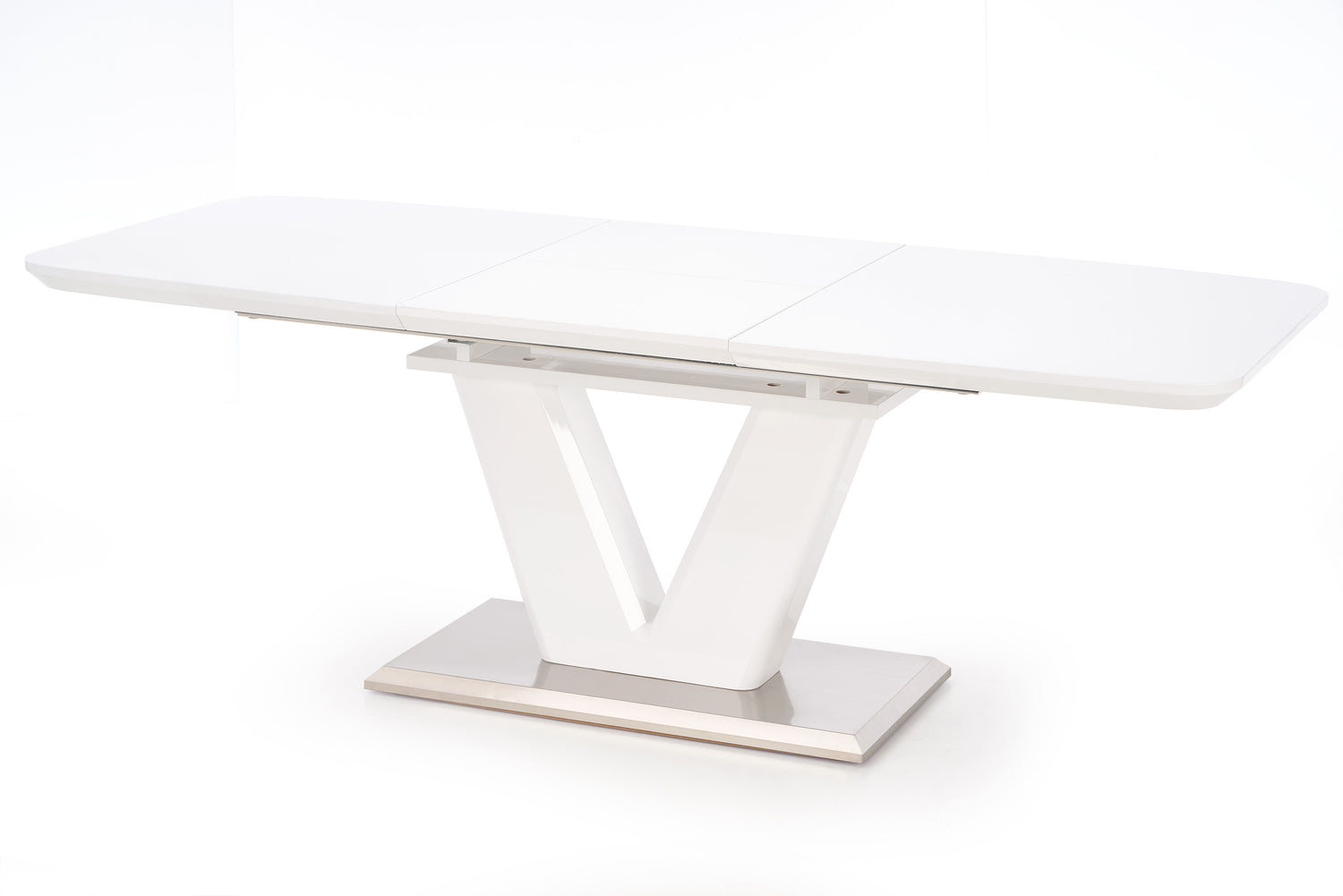 prailginimo stalas, matmenys: 160-220/90/77 cm, medžiaga: lakuotas MDF / nerūdijantis plienas, spalva: balta