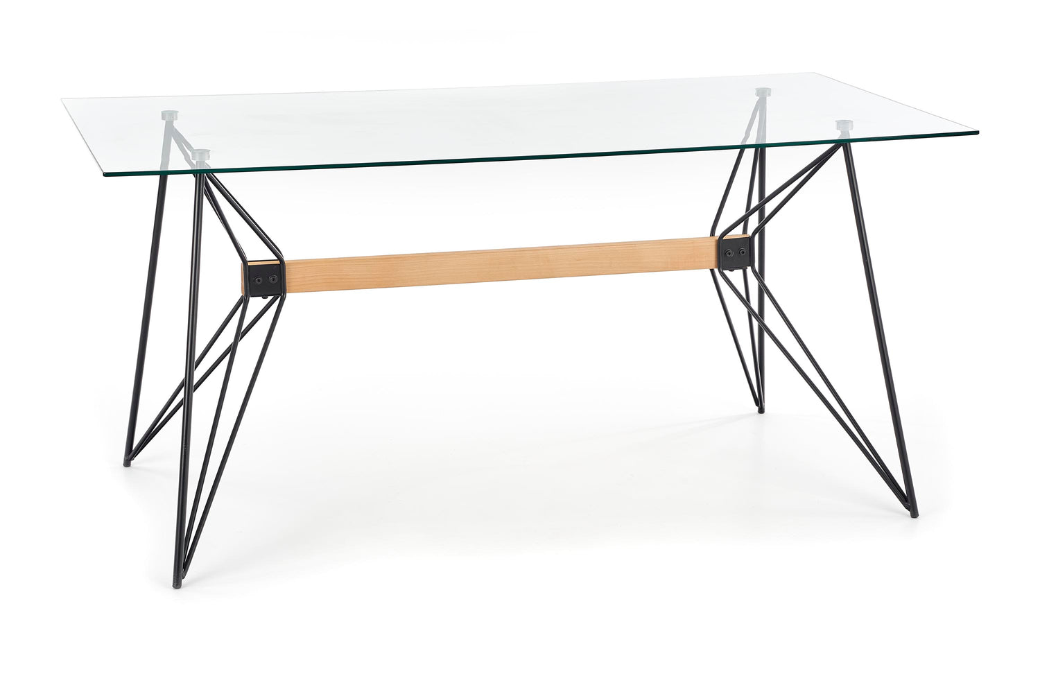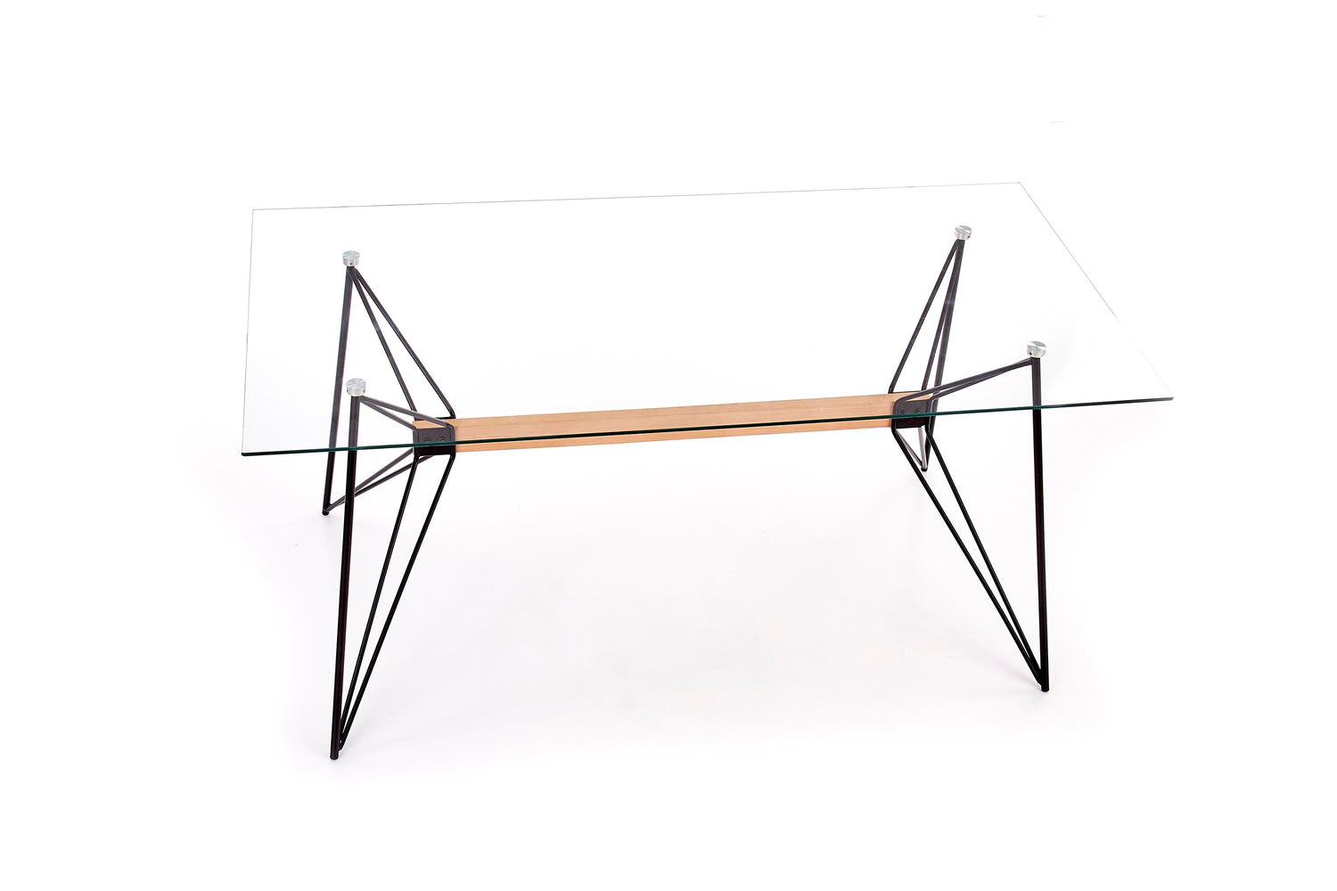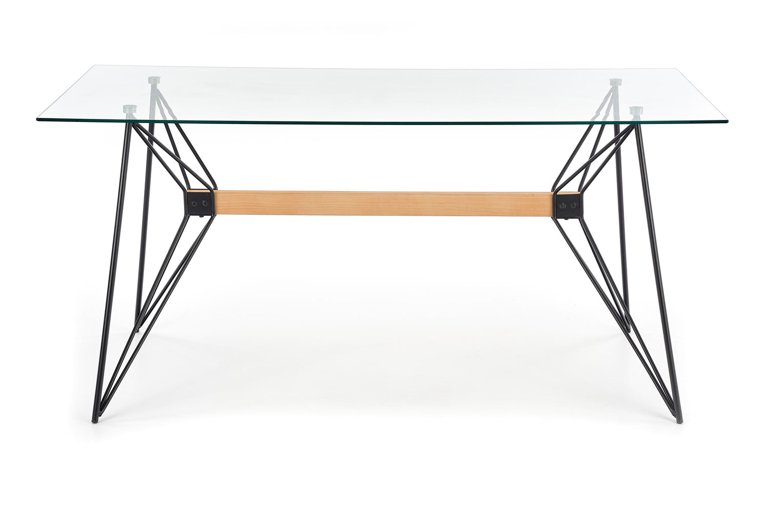 matmenys: 160/80/75 cm, medžiaga: stiklas / medžio masyvas - bukas / milteliniu būdu dažytas plienas, spalva: viršus - skaidrus, kojos - juodos