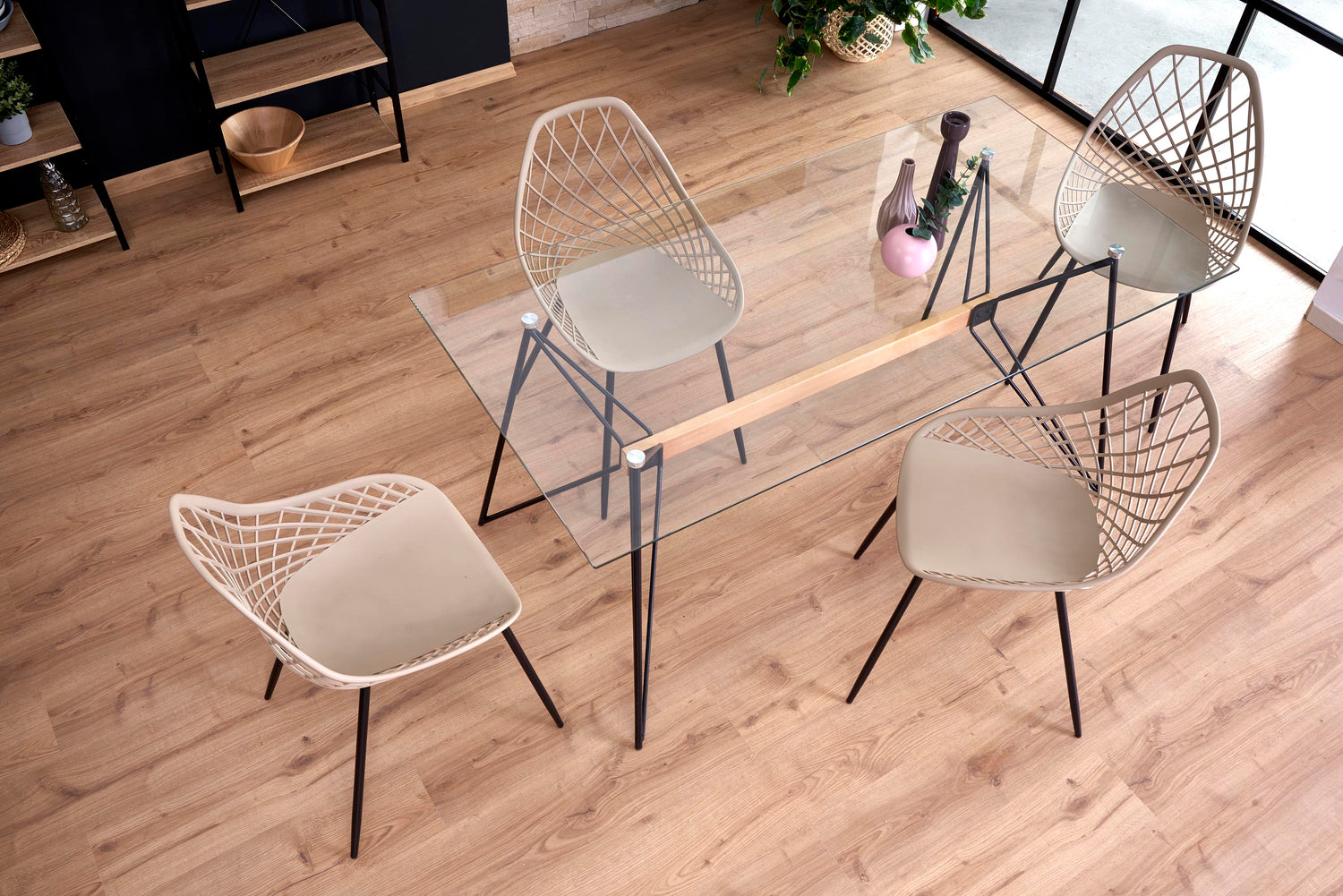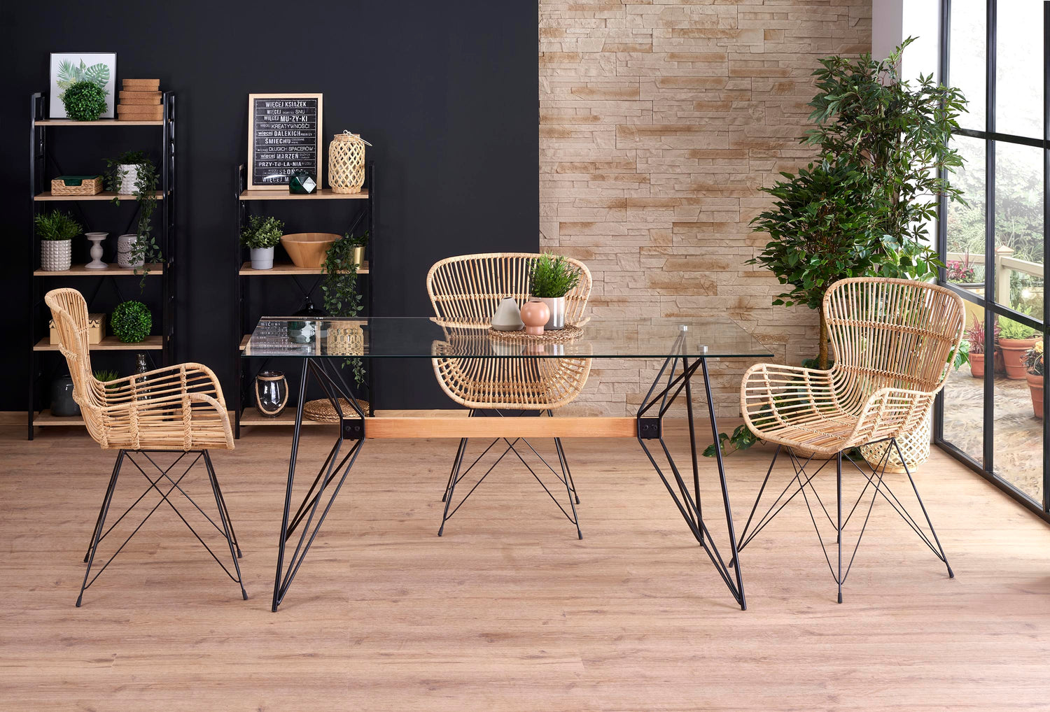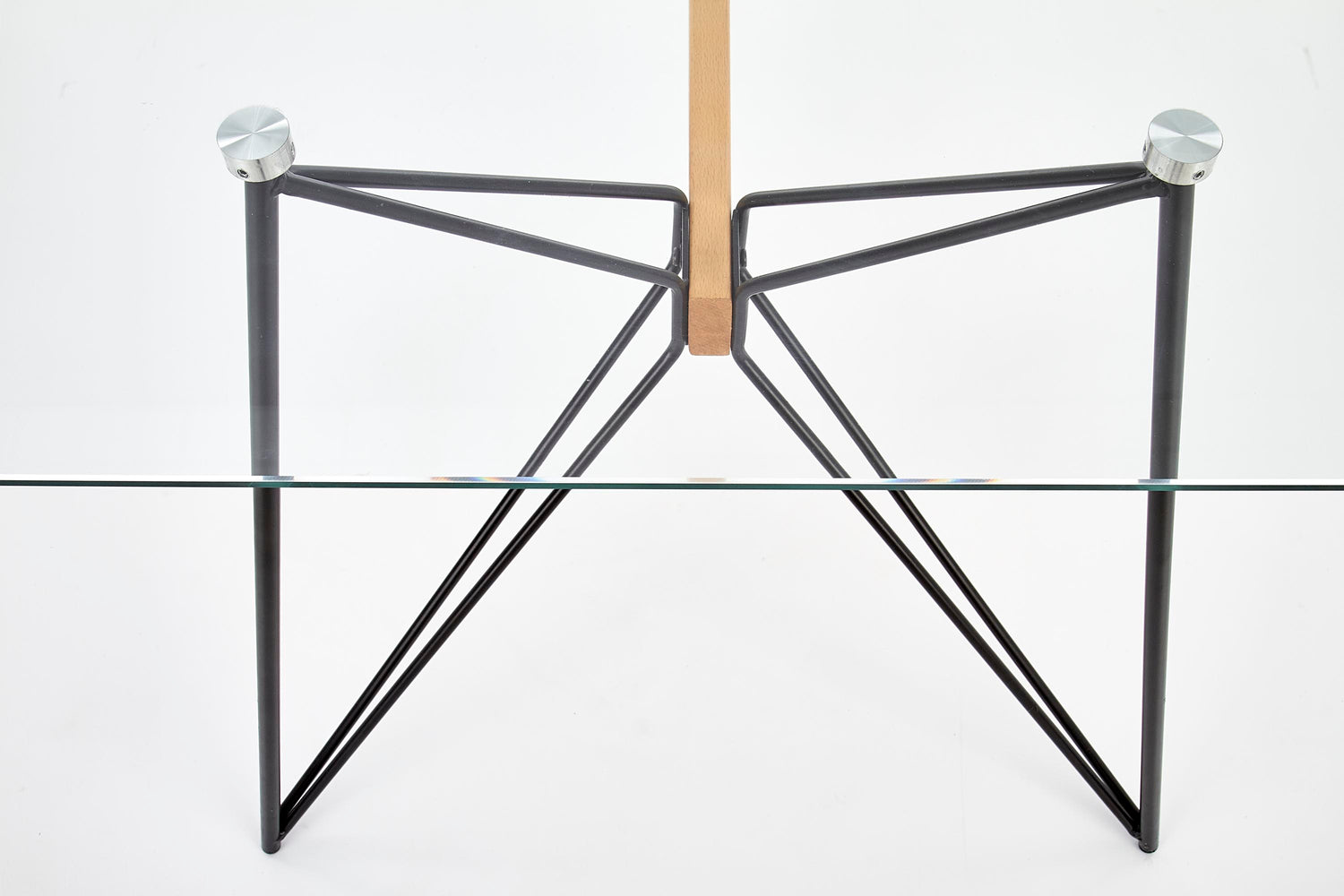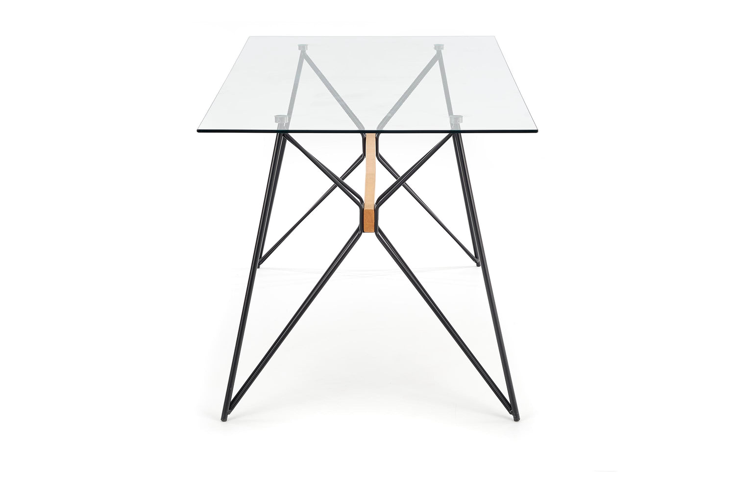 matmenys: 160/80/75 cm, medžiaga: stiklas / medžio masyvas - bukas / milteliniu būdu dažytas plienas, spalva: viršus - skaidrus, kojos - juodos