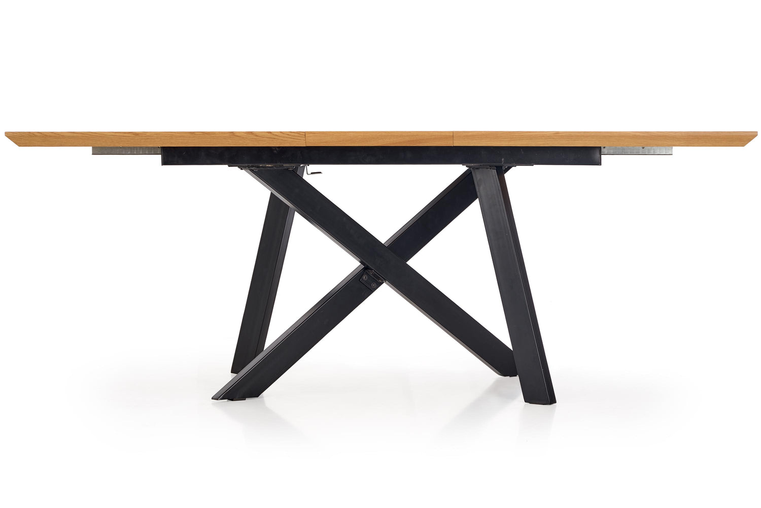 prailginamasis stalas, matmenys: 160-200/90/76 cm, medžiaga: laminuotas MDF / milteliniu būdu dažytas plienas, spalva: auksinis ąžuolas / juoda