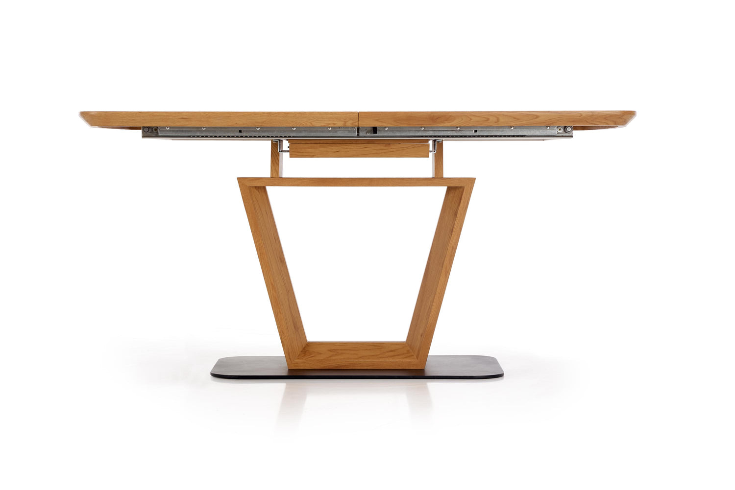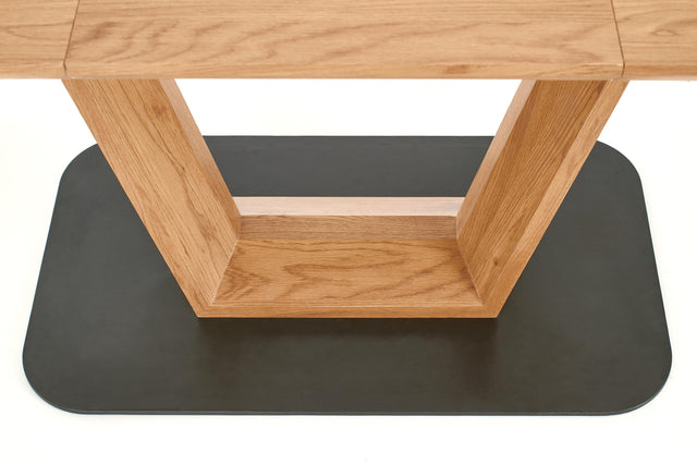 prailginamasis stalas, matmenys: 160-220/90/76 cm, medžiaga: laminuotas MDF / milteliniu būdu dažytas plienas, spalva: auksinis ąžuolas / juoda