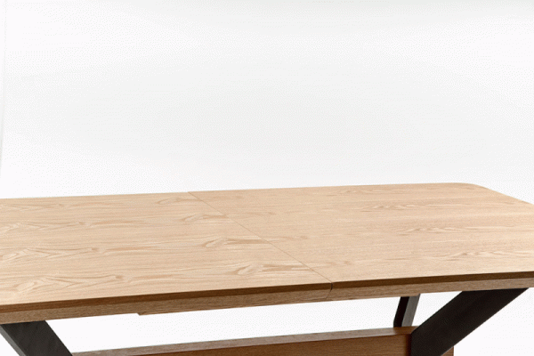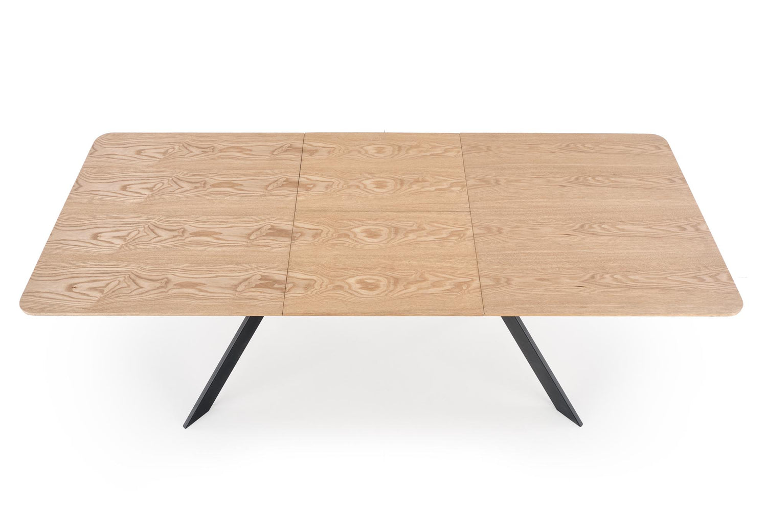 prailginamasis stalas, matmenys: 160-220/90/76 cm, medžiaga: MDF + natūrali fanera / milteliniu būdu dažytas plienas, spalva: viršus - natūralus ąžuolas, kojos - juodos