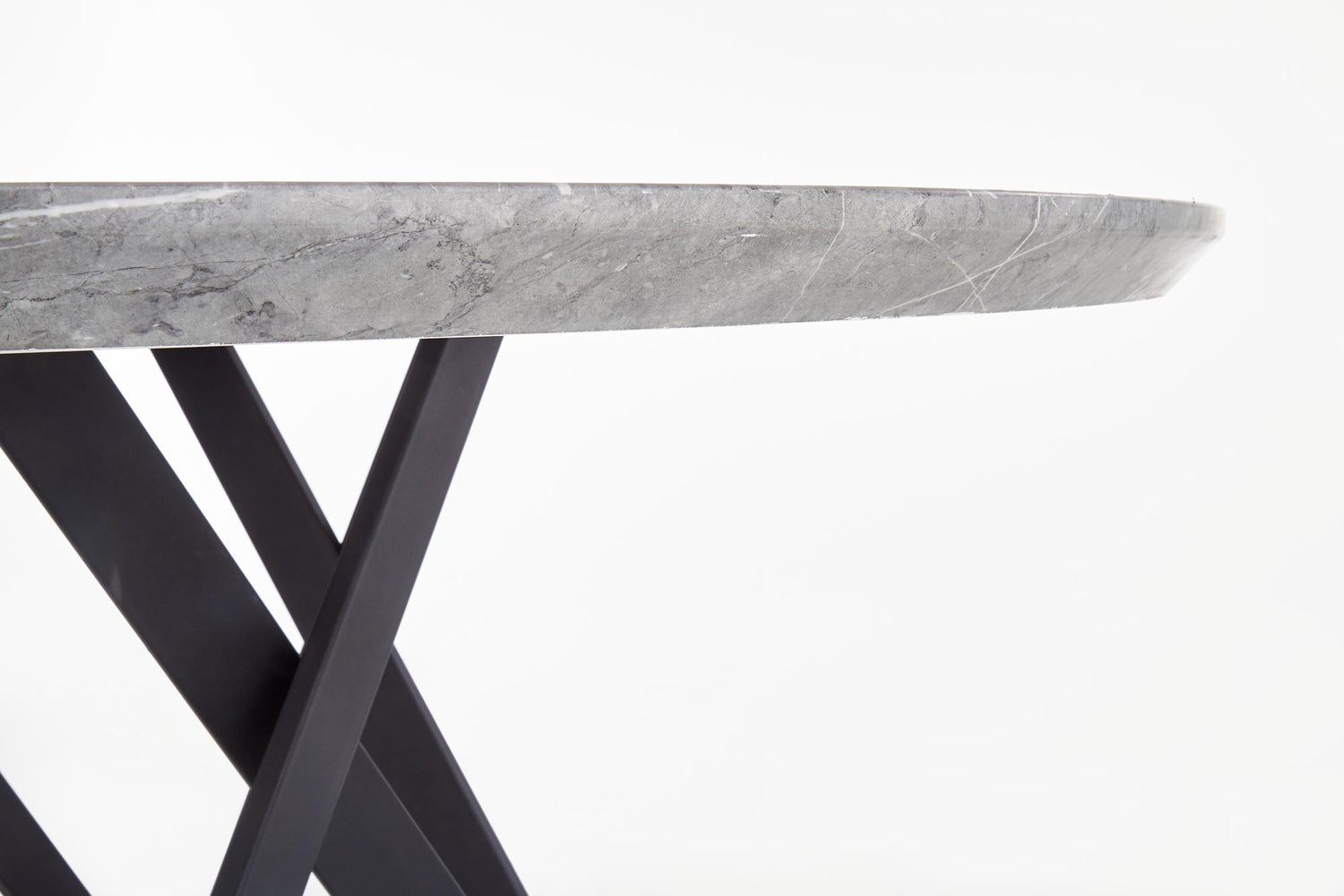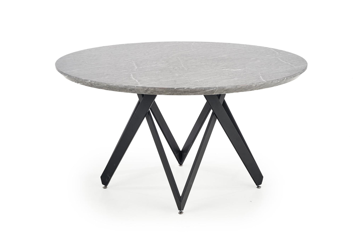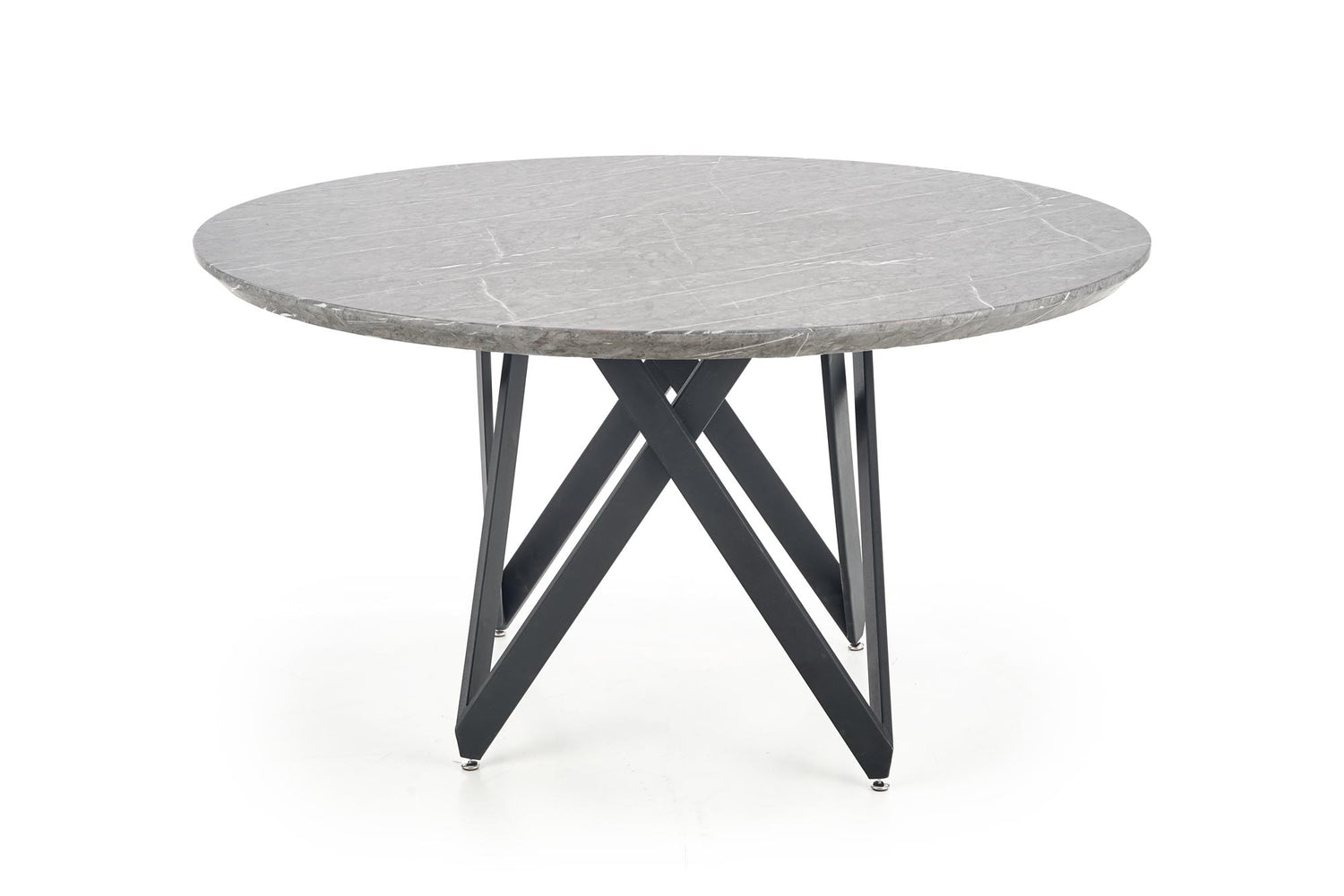 matmenys: o140/77 cm, medžiaga: laminuotas MDF / milteliniu būdu dažytas plienas, spalva: viršus - pilkas marmuras, kojos - juodos