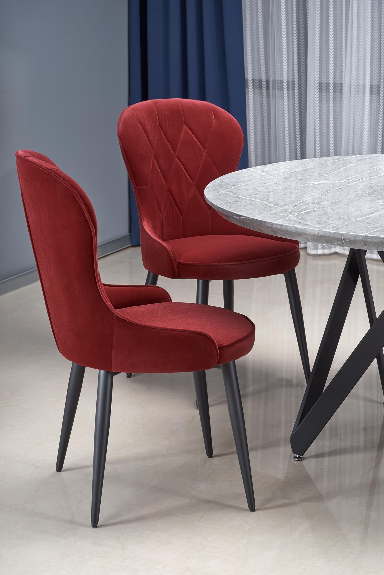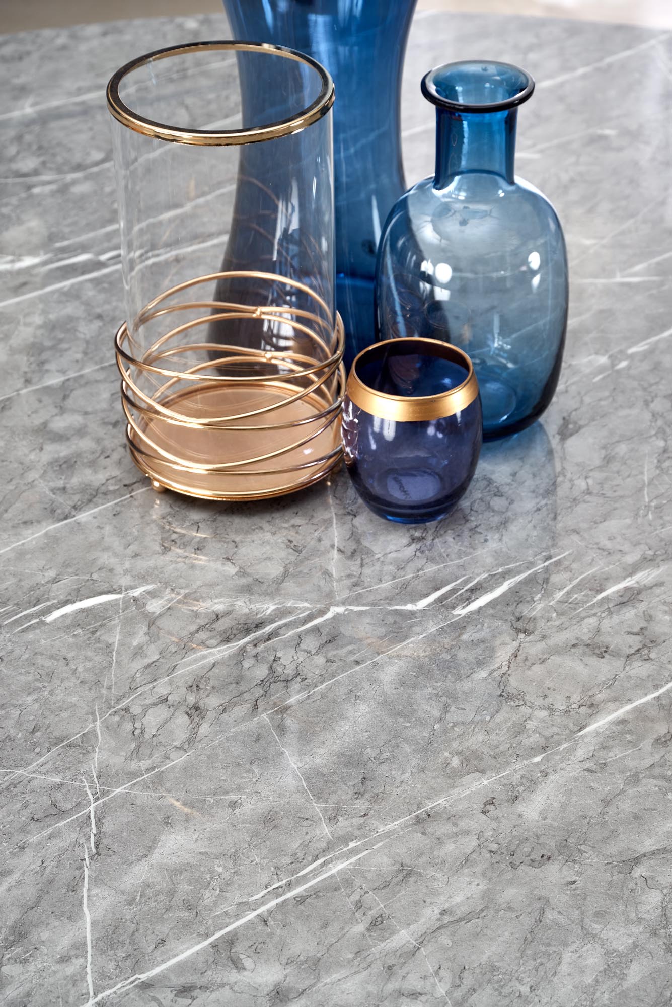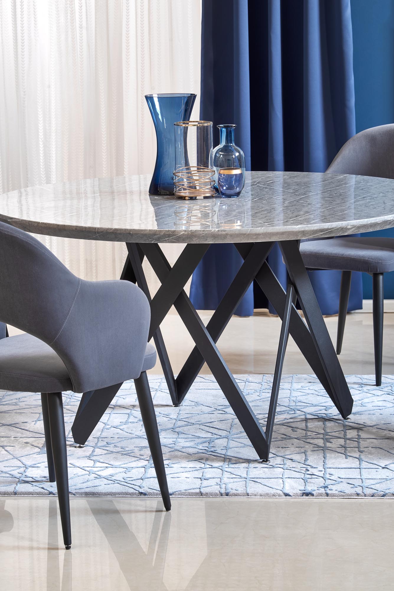 matmenys: o140/77 cm, medžiaga: laminuotas MDF / milteliniu būdu dažytas plienas, spalva: viršus - pilkas marmuras, kojos - juodos