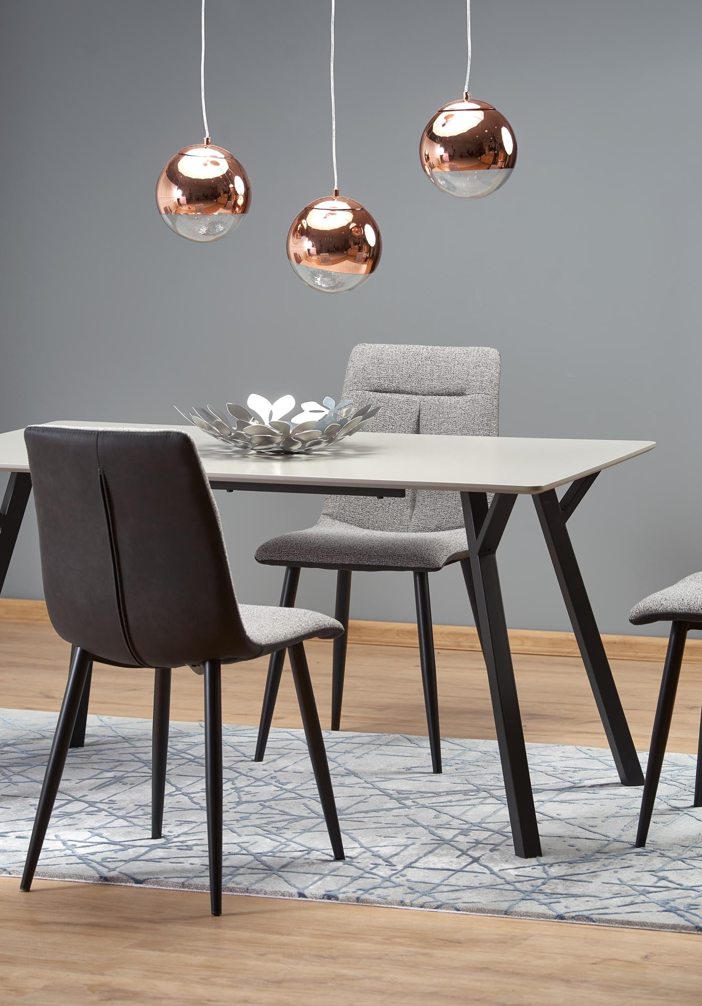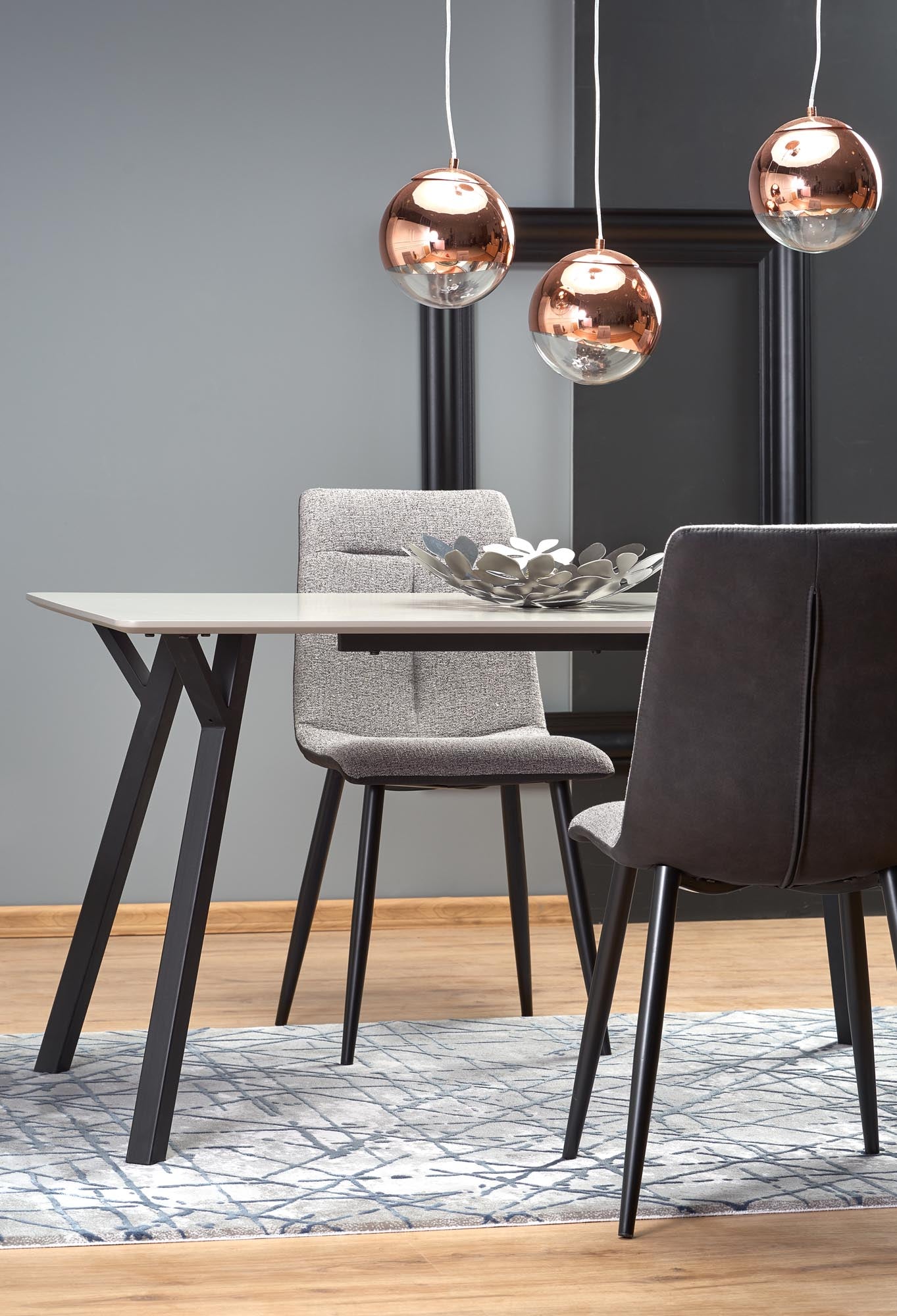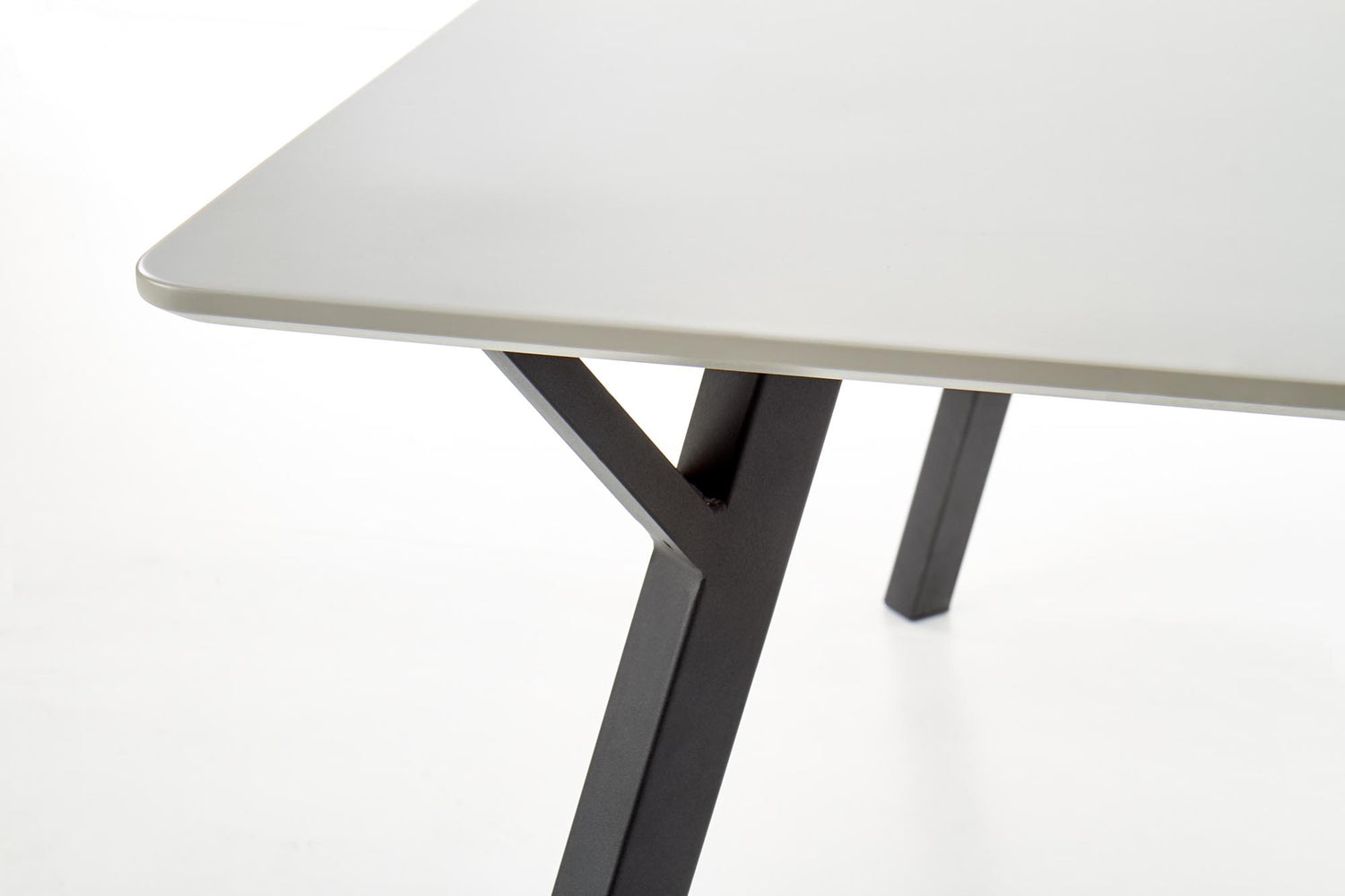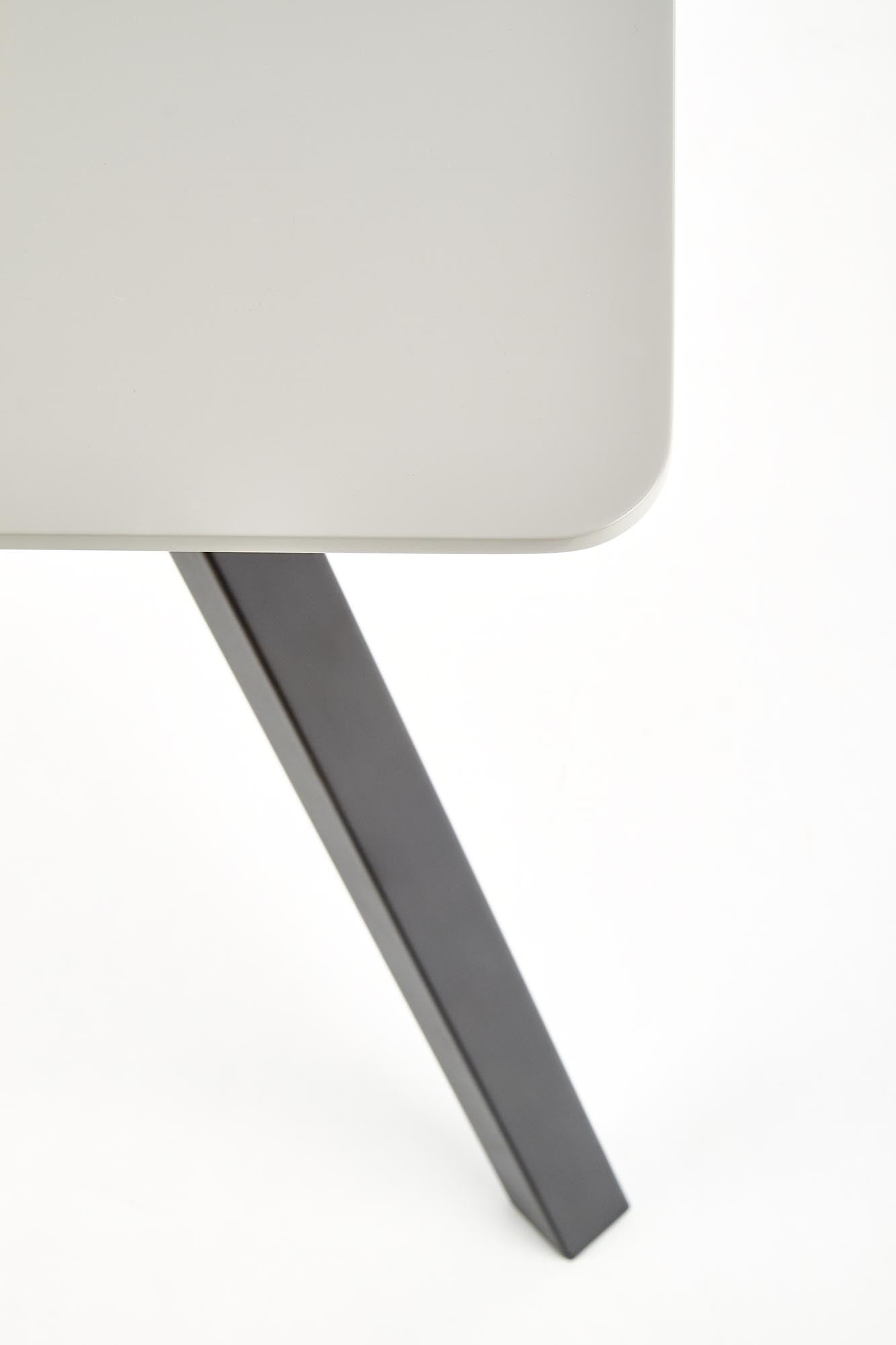 matmenys: 140/80/74 cm, medžiaga: lakuotas MDF / milteliniu būdu dažytas plienas, spalva: viršus - šviesiai pilka, kojos - juodos