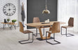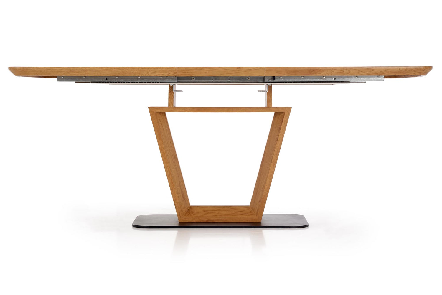 matmenys: 160-220/90/76 cm, prailginamasis stalas, medžiaga: MDF + natūrali fanera / milteliniu būdu dažytas plienas, spalva: viršus - natūralus ąžuolas, kojos - juodos