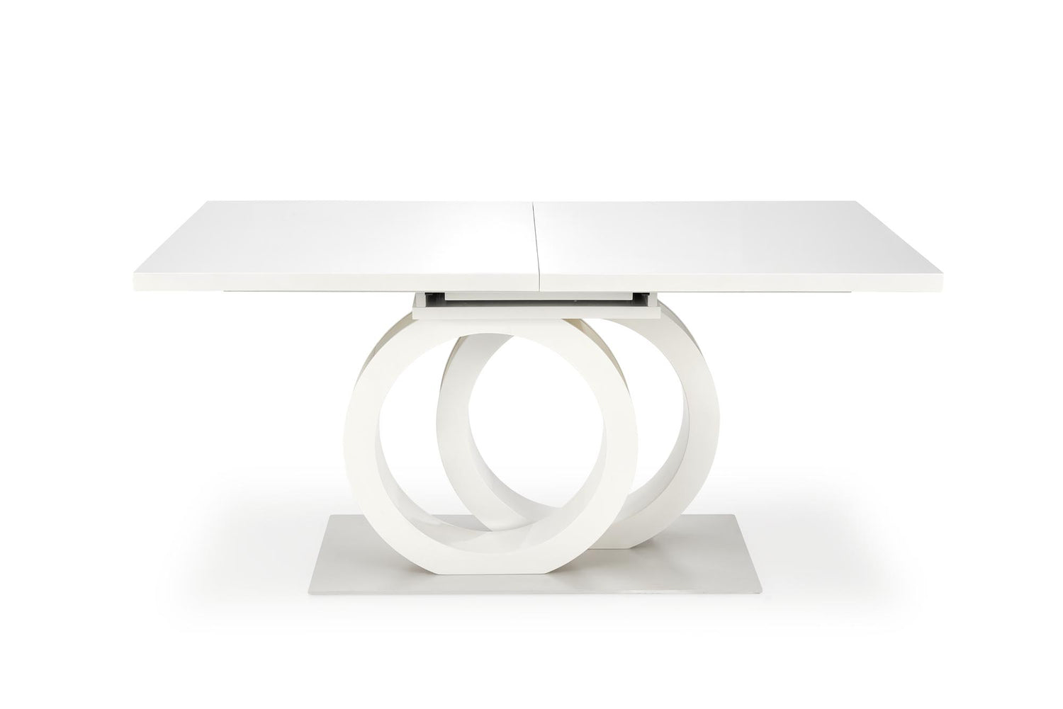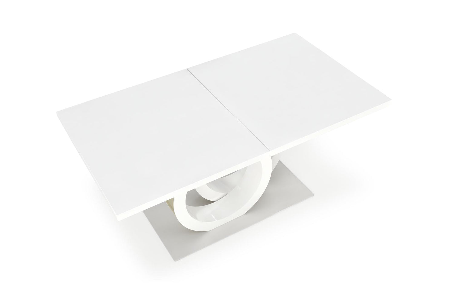 matmenys: 160-200/90/76 cm, prailginamasis stalas, medžiaga: lakuota MDF fanera / nerūdijantis plienas / milteliniu būdu dažytas plienas, spalva: balta - auksas