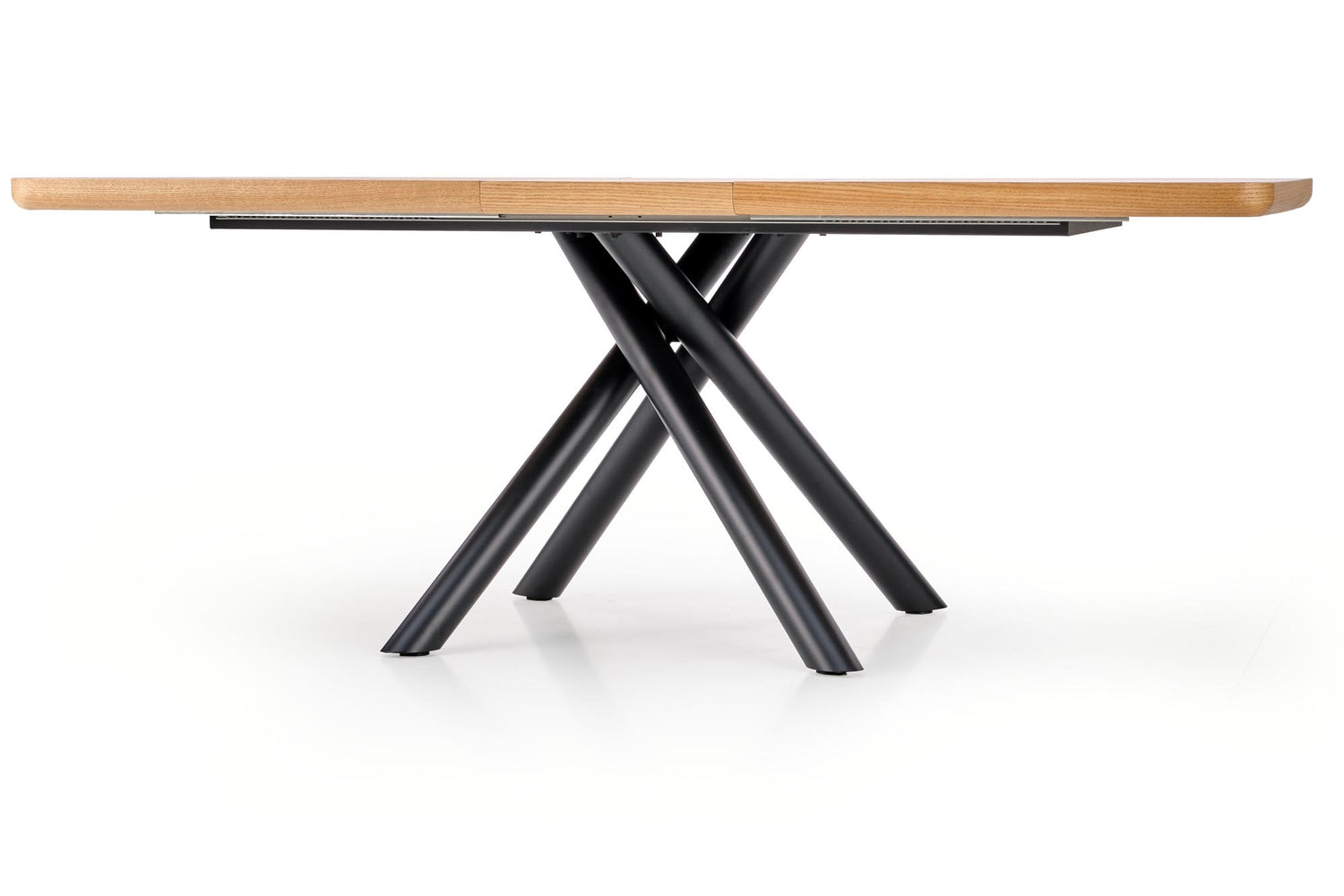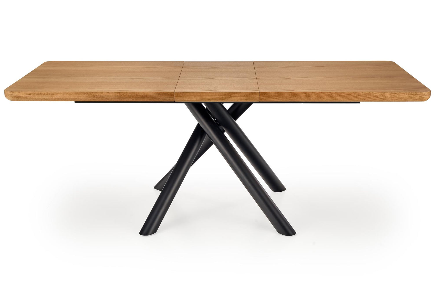 matmenys: 160-200/90/75 cm, prailginamasis stalas, medžiaga: MDF + natūrali fanera / milteliniu būdu dažytas plienas, spalva: viršus - natūralus ąžuolas, kojos - juodos