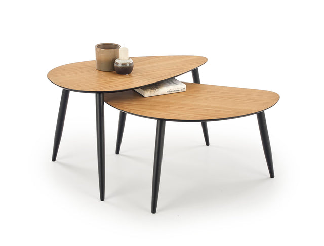rinkinys iš dviejų, matmenys: 80/45/48 cm ir 80/50/42 cm, medžiaga: MDF + natūrali fanera / medžio masyvas, spalva: auksinis ąžuolas / juoda