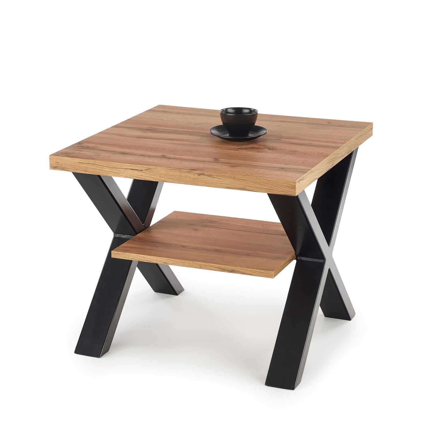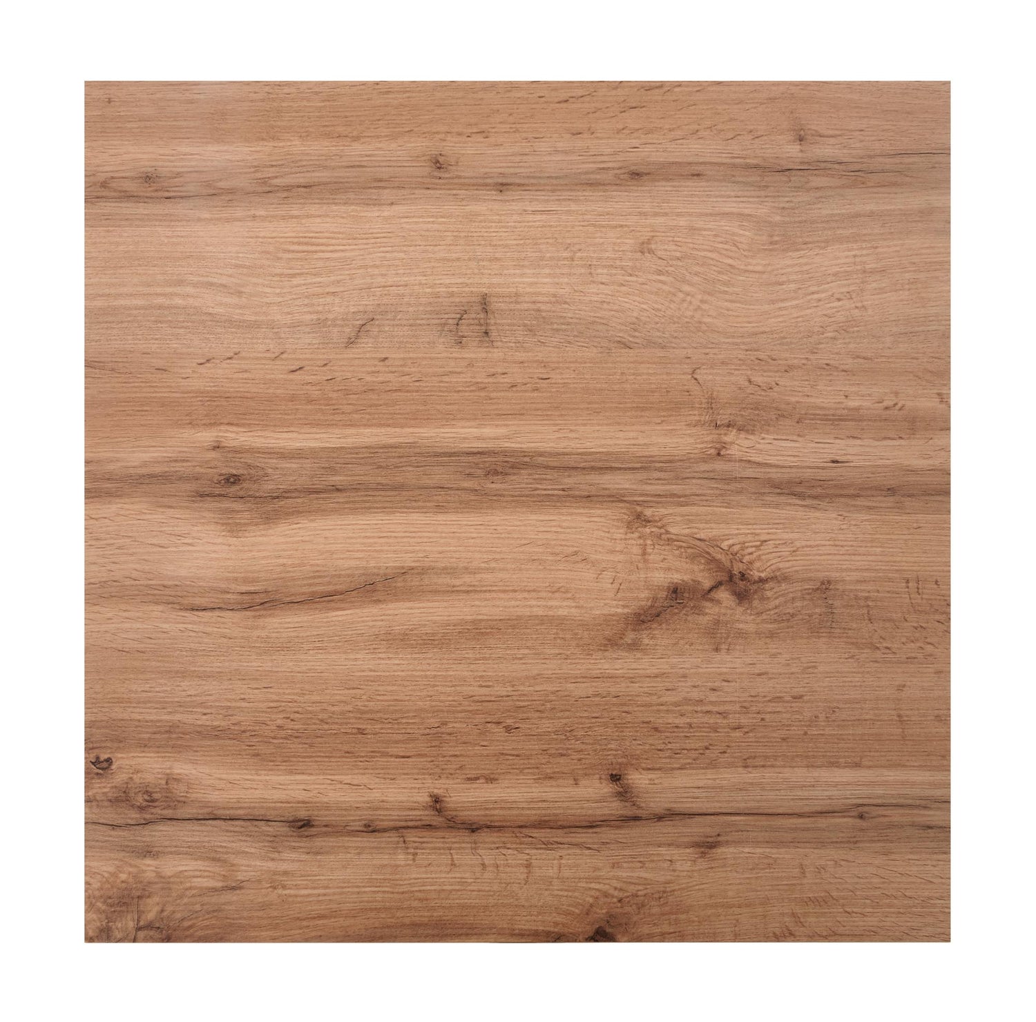 matmenys: 65/65/55 cm, medžiaga: viršus - laminuota medžio drožlių plokštė, kraštai ABS plastikas, kojos - milteliniu būdu dažytas plienas, spalva: viršus - ąžuolas, kojos - juodos