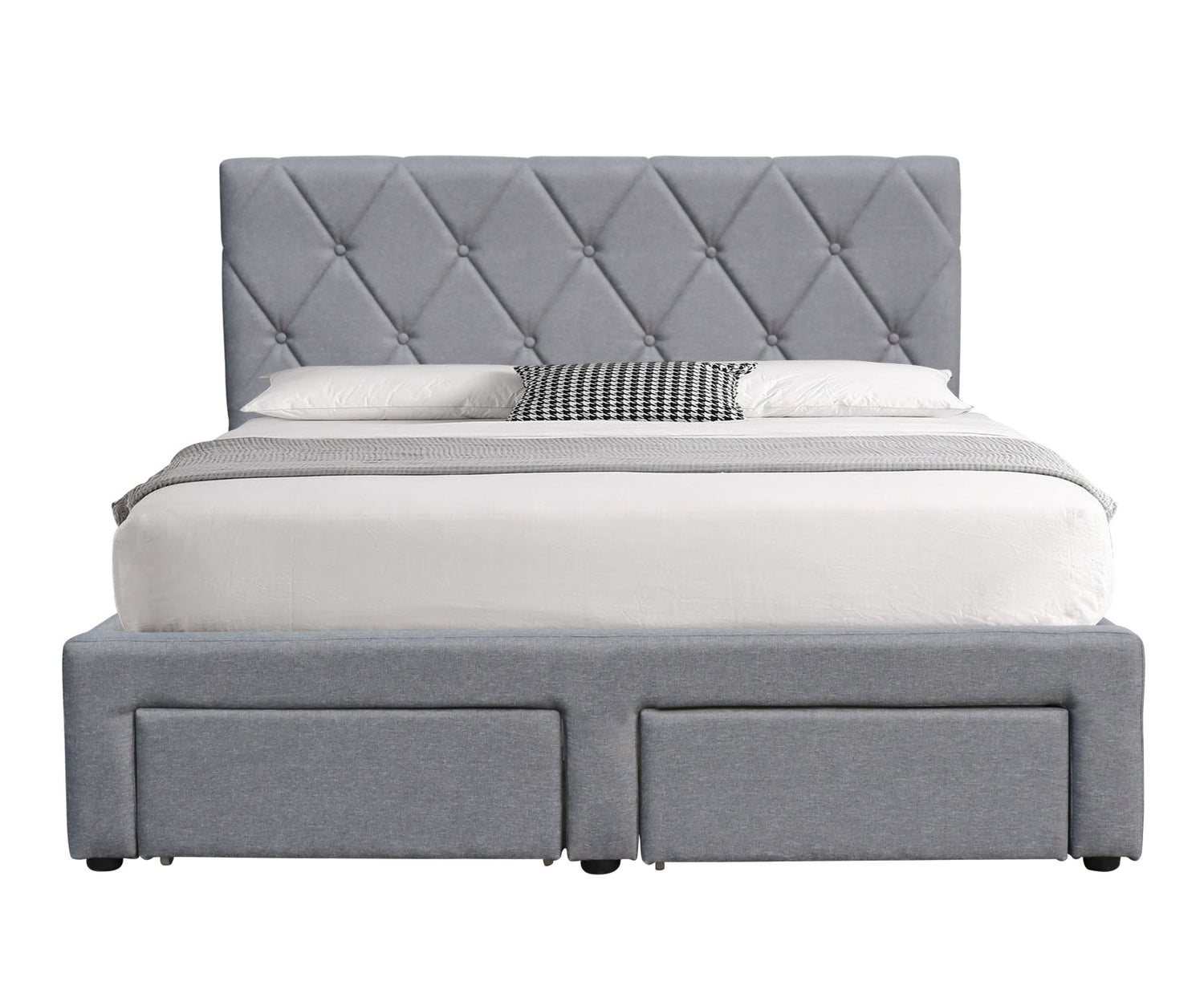 dimensions: 149/218/107 cm, bed with drawers, material: cloth / solid wood, color: cloth - grey, wood - black